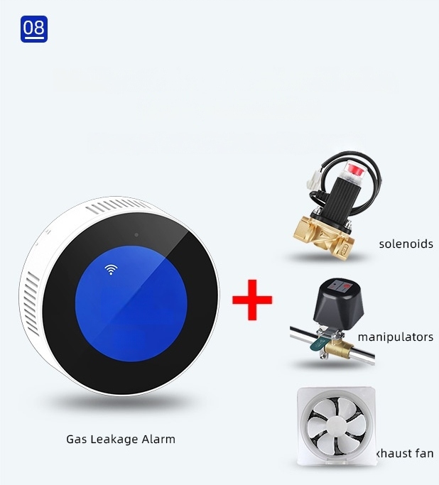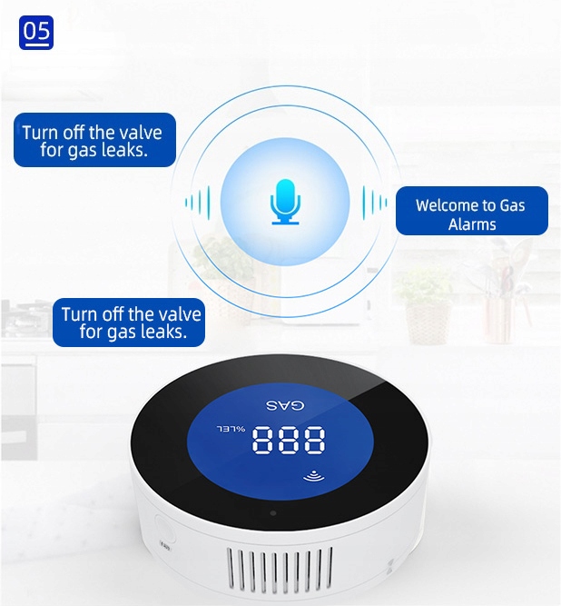 Этот датчик интеллектуально идентифицирует различные горючие газы: природный газ, сжиженный нефтяной газ, баллонный газ, угольный газ и сырую нефть. Его всенаправленные углы воздухозабора обеспечивают комплексную защиту кухонь, подсобных помещений и т. д.