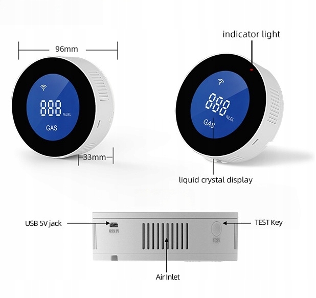 - Громкий сигнал тревоги 90 дБ: когда концентрация газа достигает установленного порога, мощная сирена и мигающие огни немедленно предупреждают всех в доме.