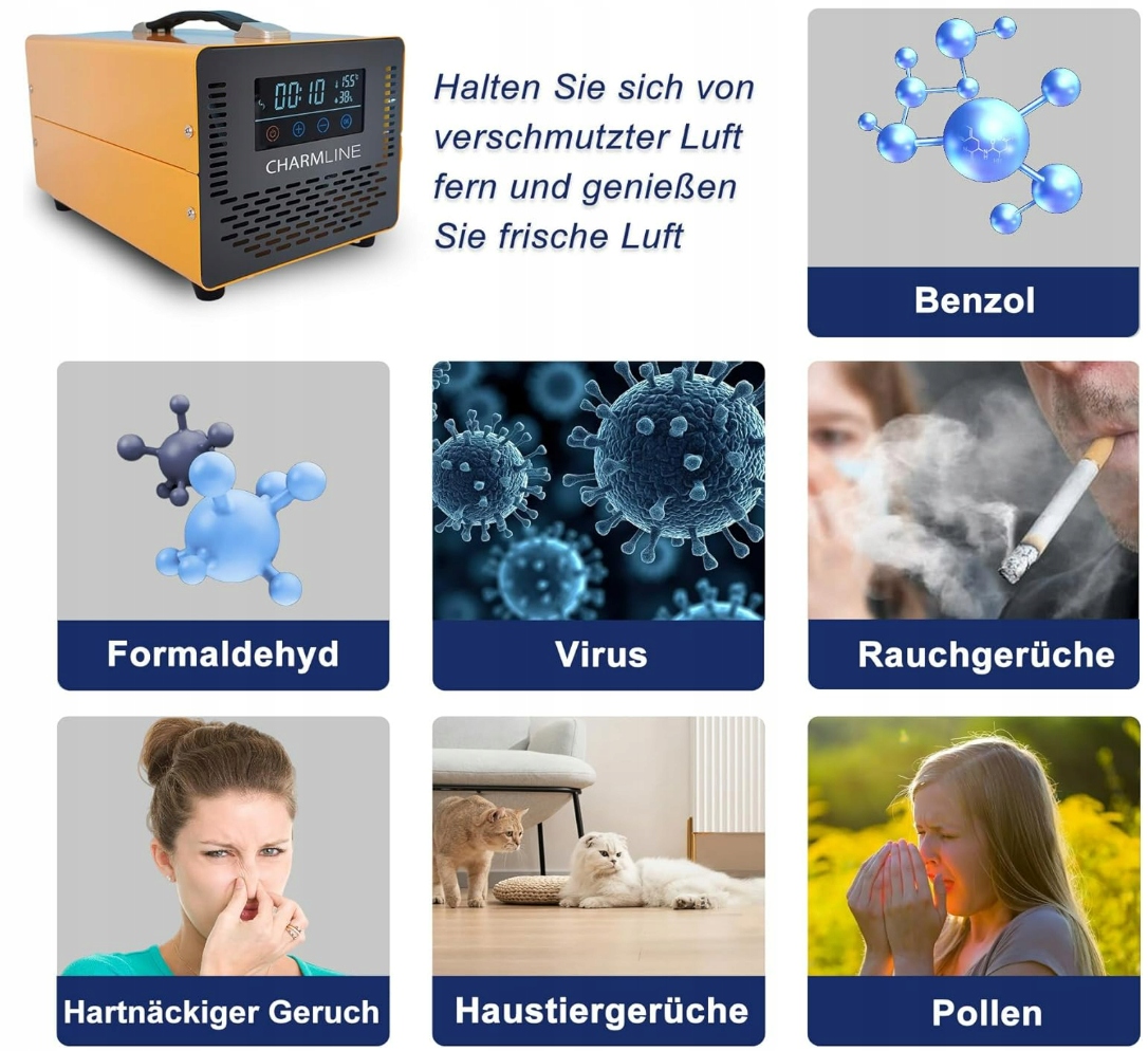 Вы боретесь с стойким запахом дыма, затхлости или плесени? Хотите эффективно продезинфицировать помещение после ремонта, затопления или просто освежить интерьер? Представляем Интеллектуальный генератор озона Charmline — мощный инструмент для профессиональной стерилизации воздуха и удаления даже самых сложных запахов.
