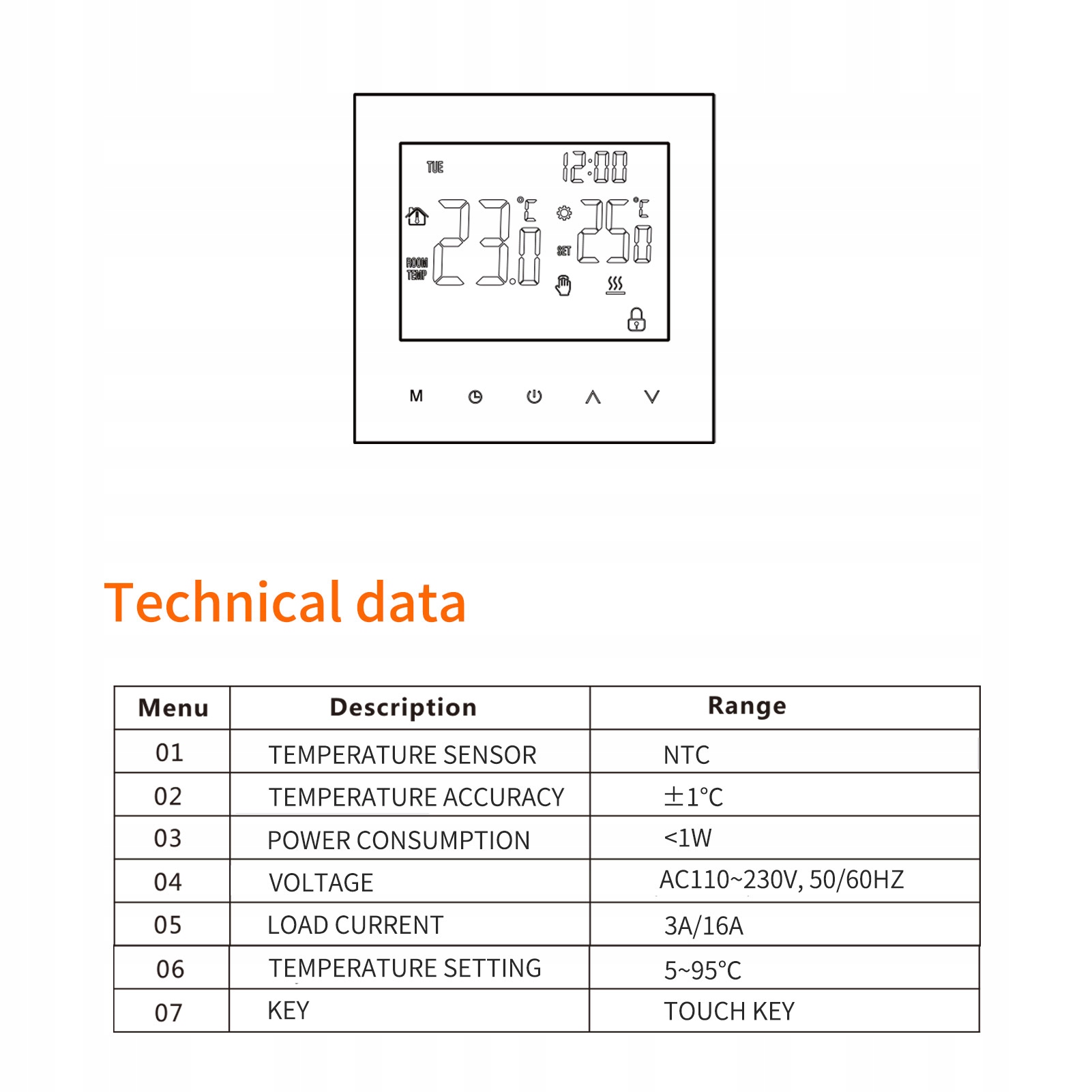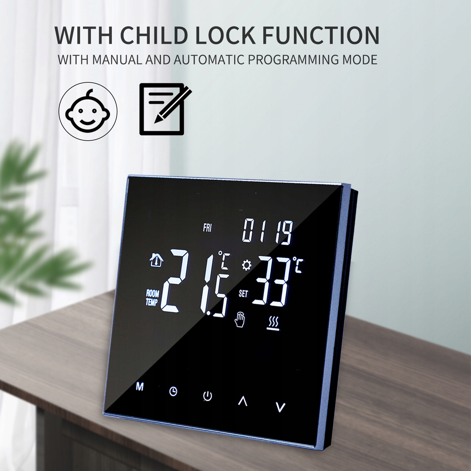 - Точная температура: датчик датчика внутреннего пола, температура восприятия окружающей среды и температура пола. Автоматически получают температуру, точность 1 ° C.