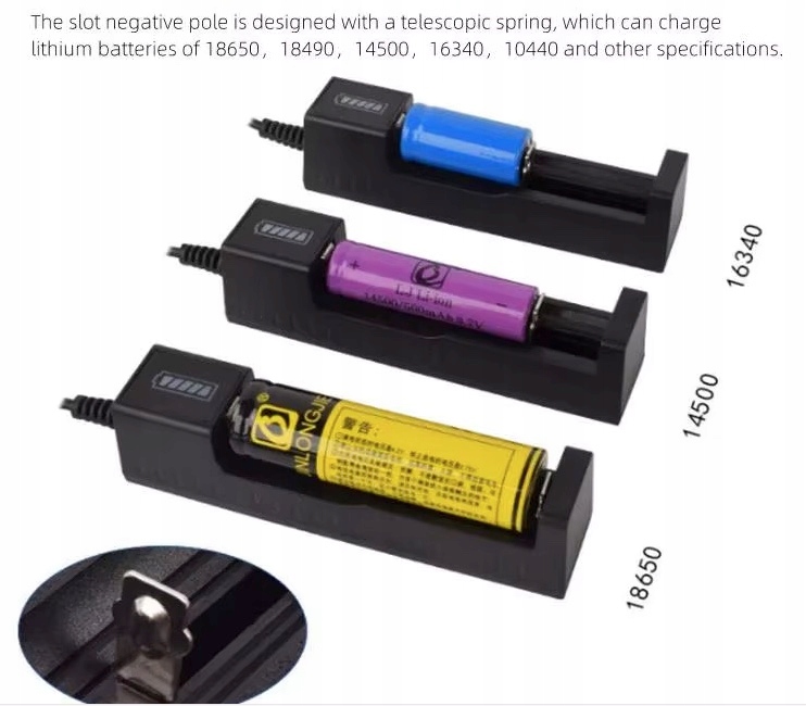 Безопасная зарядка: зарядное устройство изготовлено из высококачественного ПК и пресса, что делает его безопасным, огнеупорным, термостойким, низким температурой и устойчивым к царапинам. спецификации. Для литий-ионных аккумуляторов 3.7 V 10440, 14330, 14500, 16500, 18500, 16650, 18650, 21700, 26500, 26650.