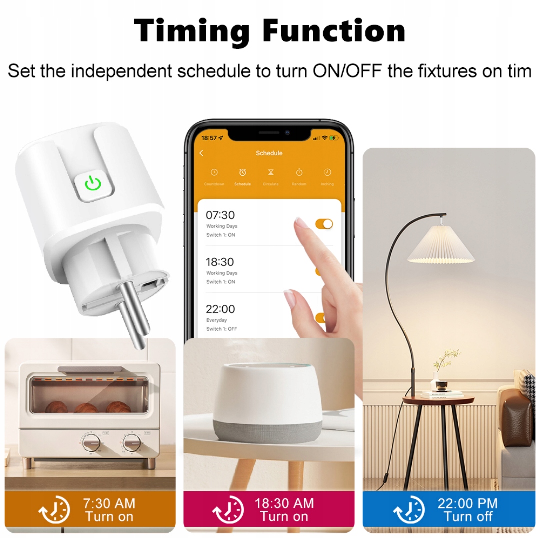 Доступна данная функция и приложение, которые позволяют подключать телефон ко времени работы устройства с учетом рабочих дней и часов. Управляйте своим объектом из любой точки города. world Подготовьте собственный план работы розетки, чтобы автоматически включать или выключать такое устройство, как лампа или вентилятор. Приложение позволяет подключить питание через устройство.