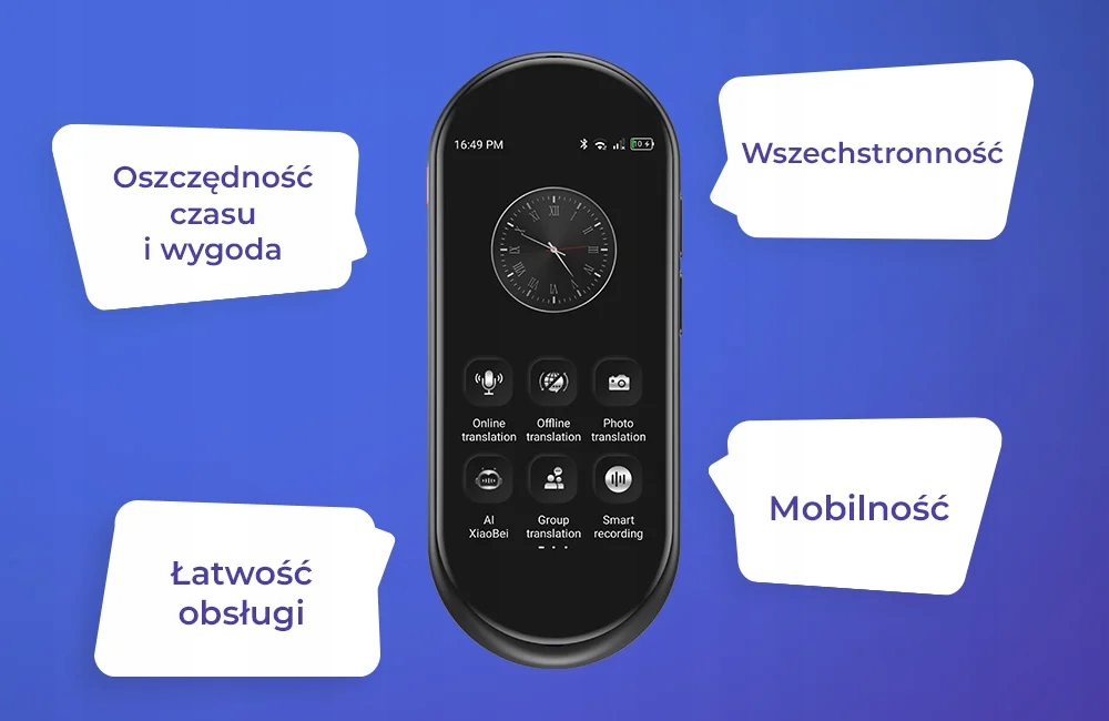 Интеллектуальный мультипереводчик с искусственным интеллектом, созданный для безграничного общения по всему миру. Благодаря современному искусственному интеллекту и технологии перевода в реальном времени он обеспечивает пользователям максимальную точность и комфорт при голосовом переводе.
