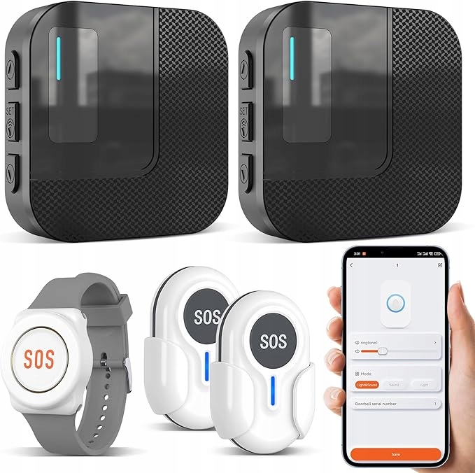 Цвет набора: 2 Черные приемники + 1 браслет SOS + 2 передатчики