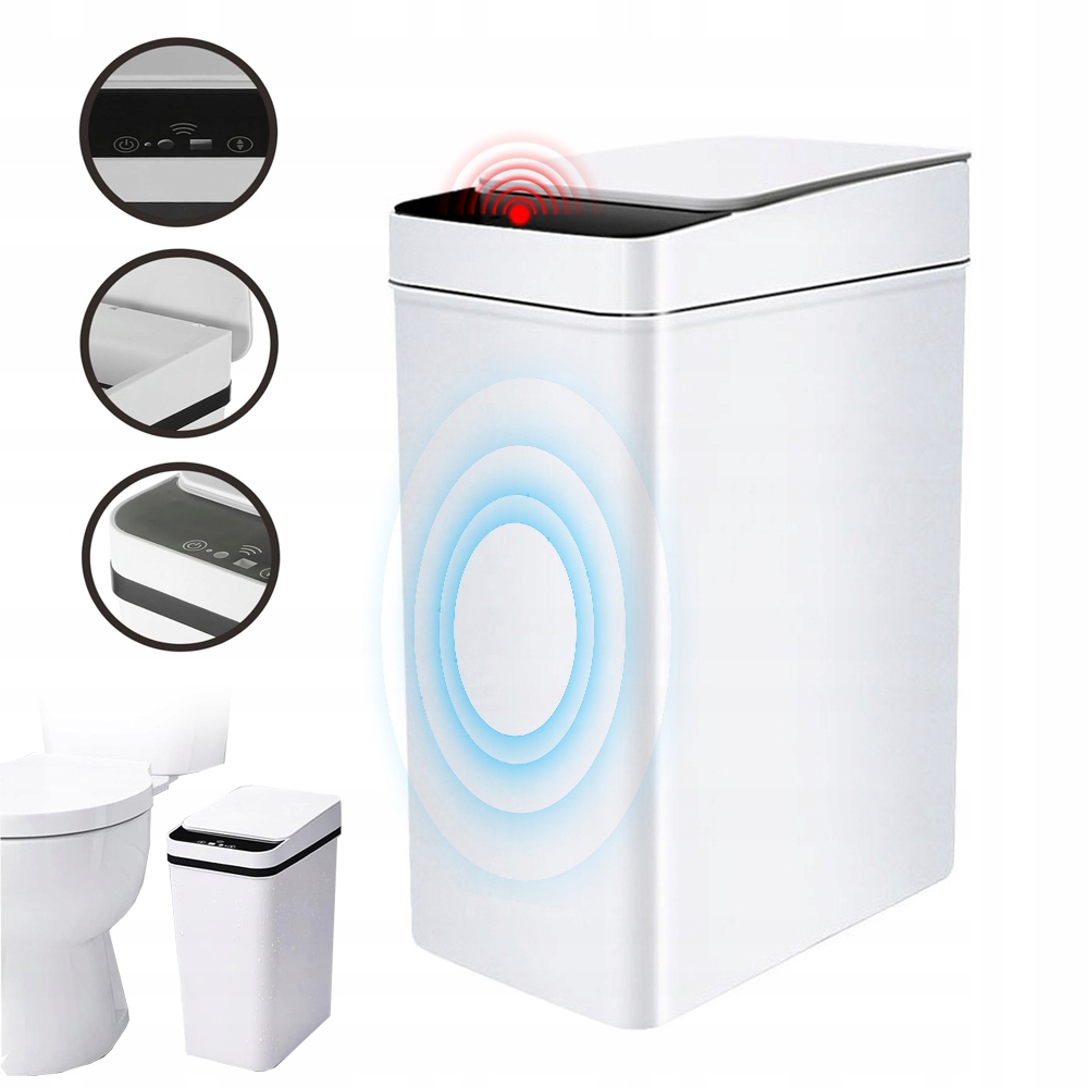 - 🔵 Продуманный дизайн: Эта мусорная корзина с датчиком движения имеет тонкую форму и идеально подходит для ванных комнат, спален, кухонь и различных помещений с ограниченным пространством. Это тонкое ведро с крышкой максимально эффективно использует узкие щели. Белый мусорный бак с сенсорной системой подойдет к большинству стилей интерьера.