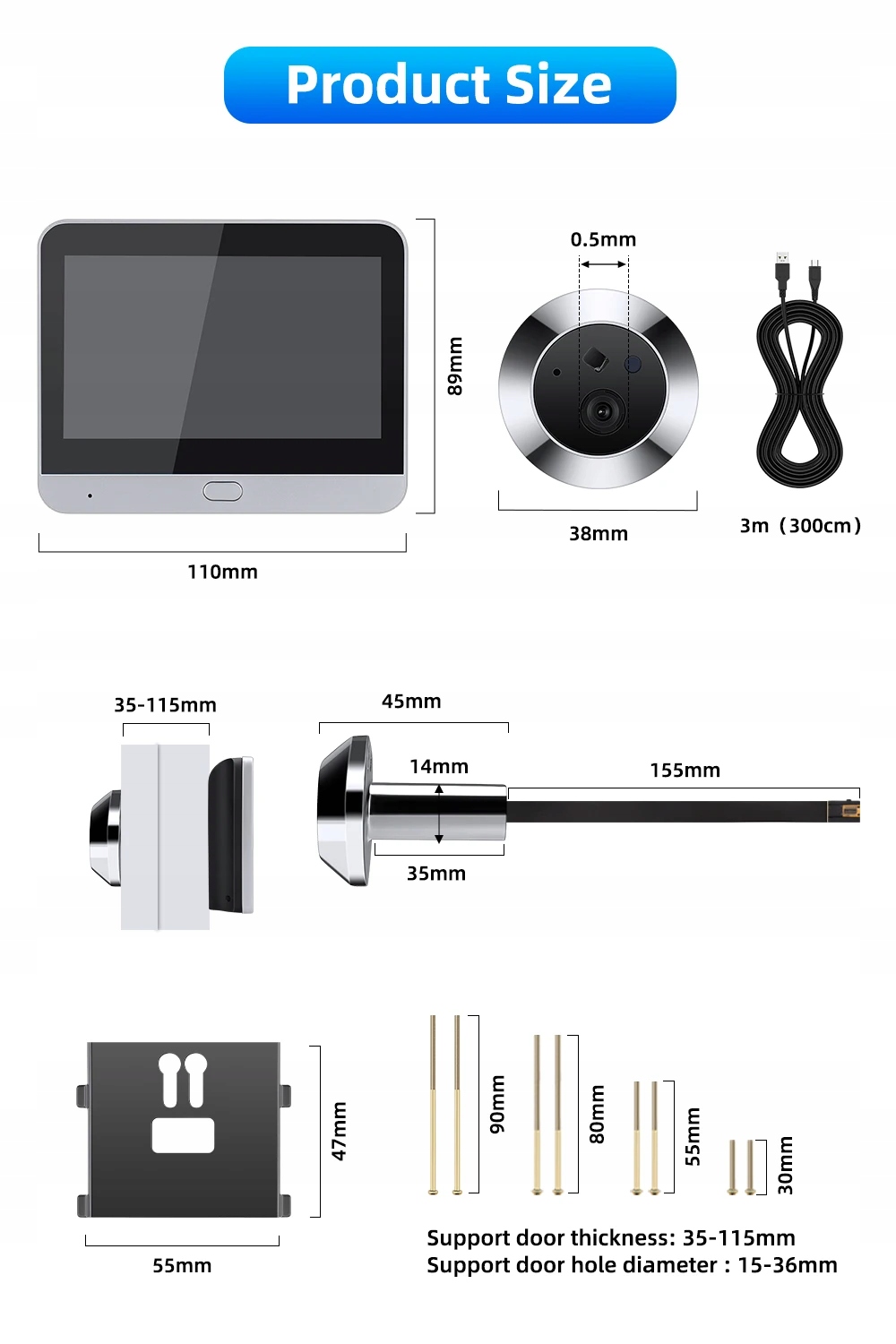 Дверная толщина: 35-120 мм (перед покупкой толщины дверей должно быть измерено)