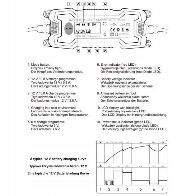 Последняя модель зарядного устройства eXtreme, модель SBC-61238, представляет собой усовершенствованное зарядное устройство, очень простое и интуитивно понятное в использовании. После завершения процесса зарядки он автоматически переходит в состояние контроля напряжения, обеспечивая максимальную безопасность для каждой батареи. Использование автоматического зарядного устройства положительно влияет на продление срока службы аккумулятора.