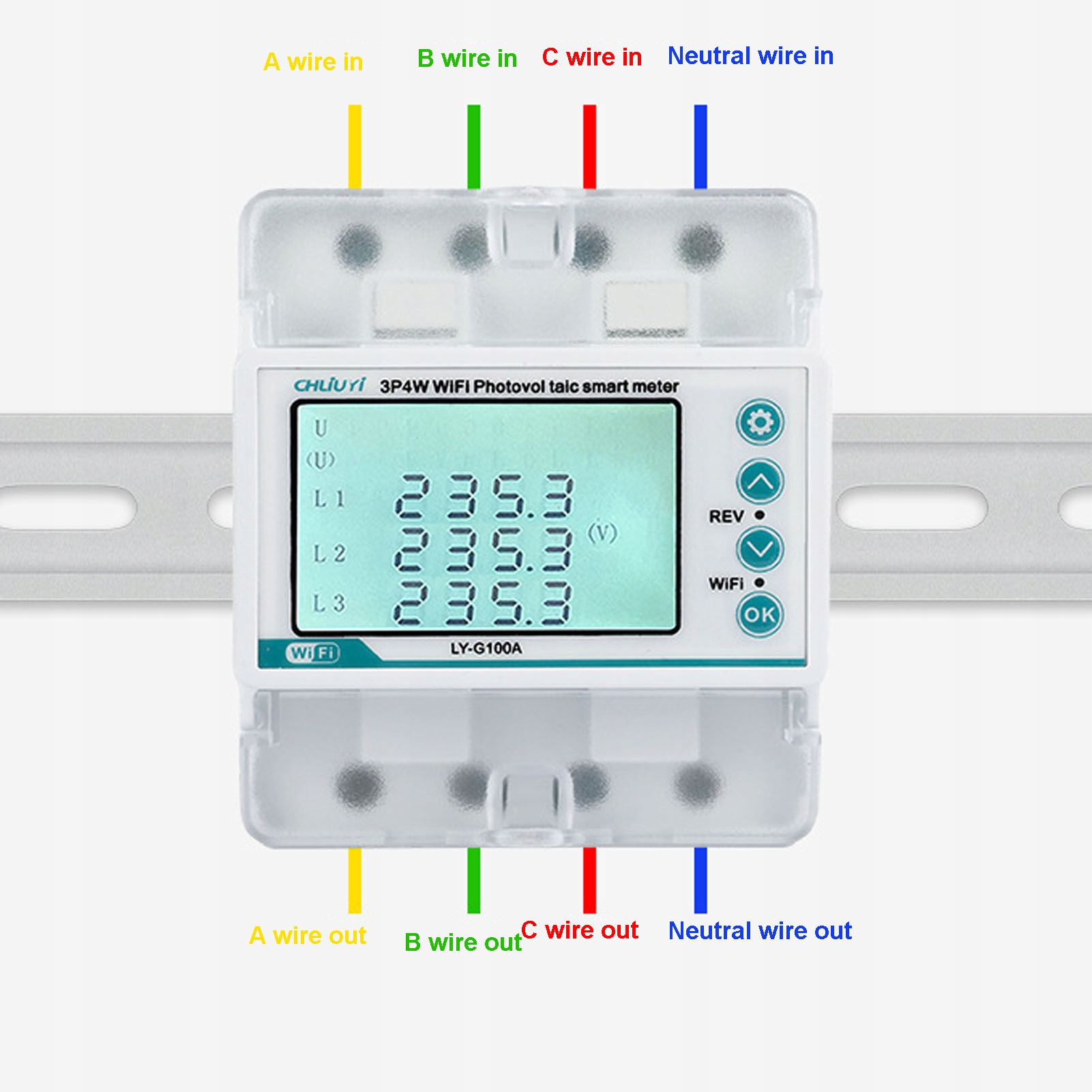 Интеллектуальный Wi -Fi Power Meter ЖКД Din Rail Mount 3 Phase DQ