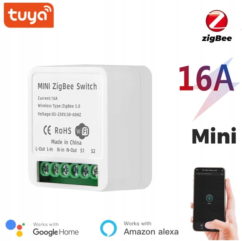 ИНТЕЛЛЕКТУАЛЬНЫЙ WiFi ZigBee 3.0 РЕЛЕ ПЕРЕКЛЮЧАТЕЛЬ TUYA SMART 16A
