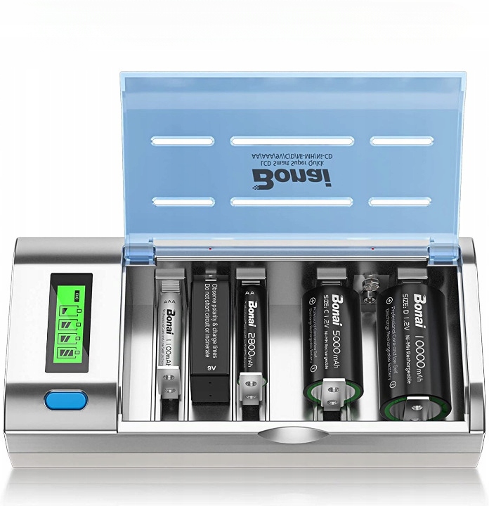 Многофункциональность: Это зарядное устройство не предназначено для зарядки батарей 1,5 В, обычных батарей, одноразовых батарей или одноразовых щелочных батарей. Благодаря независимому разъему для зарядки он может одновременно заряжать до 4 батарей типа AA AAA напряжением 1,2 В или до двух батарей Ni-MH/Ni-CD напряжением 9 В. Зарядка ТОЛЬКО одной батареи не является проблемой.