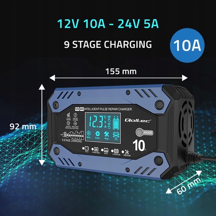 Qoltec Intelligent Battery Charger Std Agm Gel LifePo4 | Простой