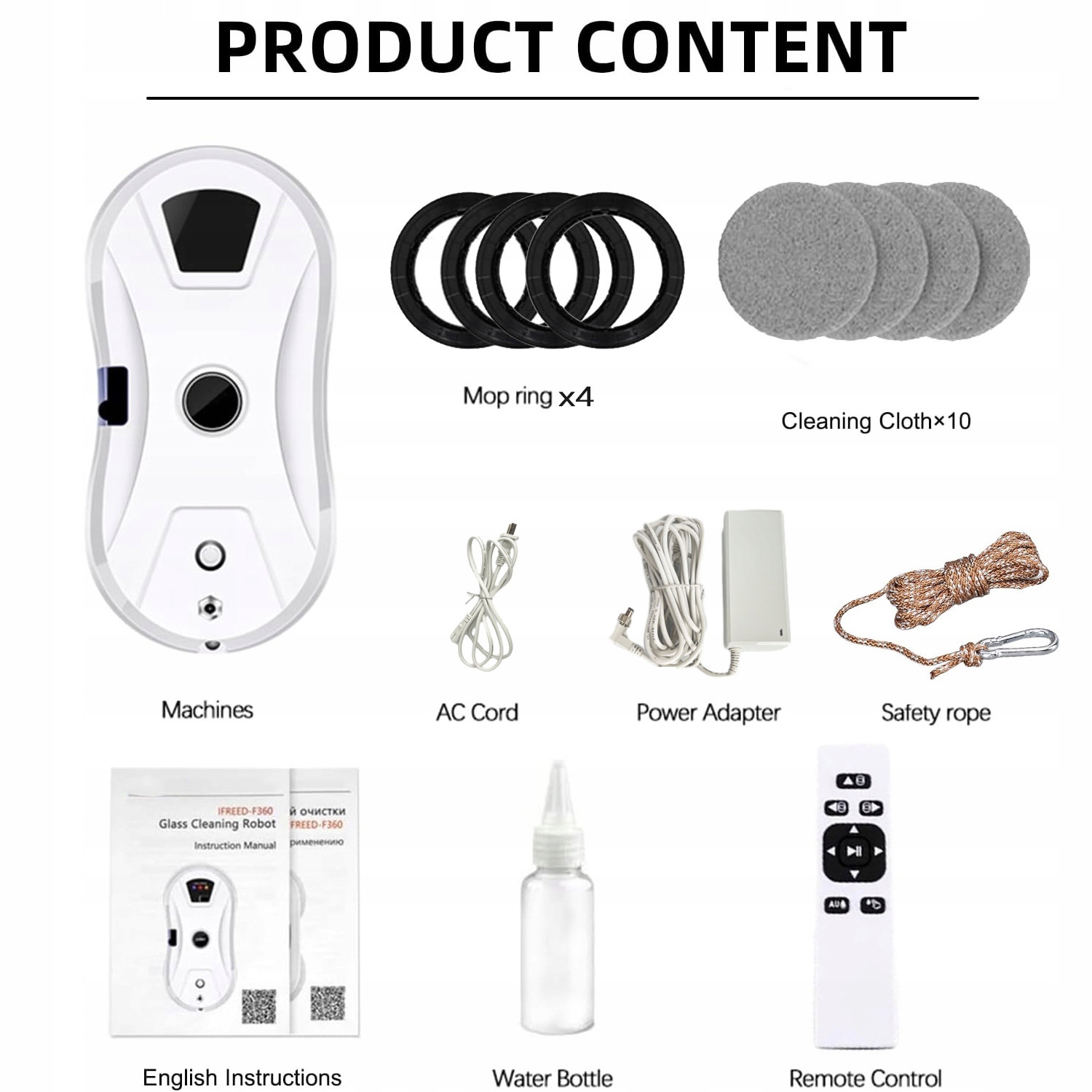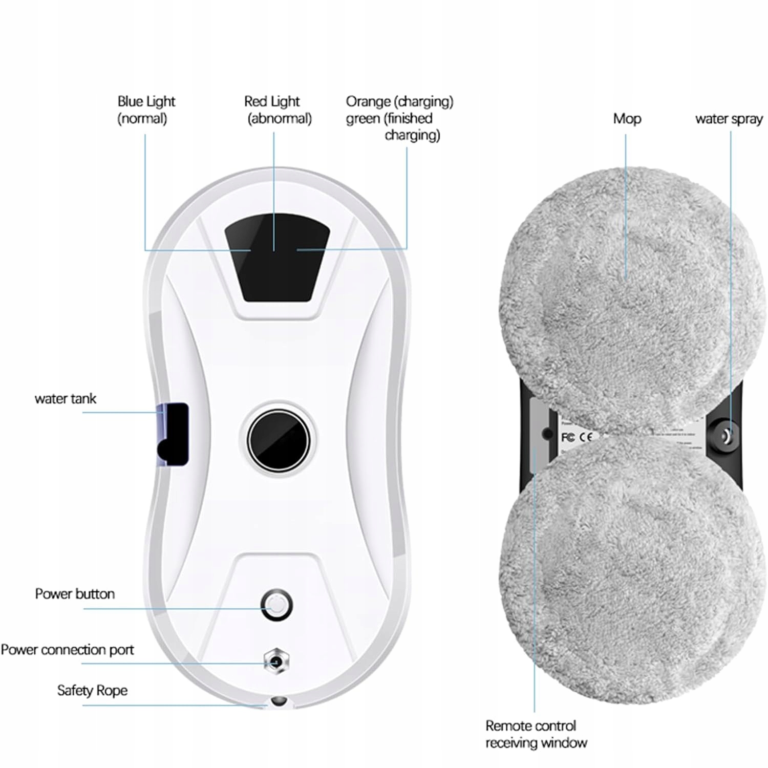 Новый робот для очистки автоматической системы ультразвукового распыления воды с резервуаром для воды на 30 мл, что упрощает работу для удаления стойких пятен; Вы можете выбрать между автоматическим или проточным распылением воды с помощью инструмента на пульте дистанционного управления, чтобы тщательно очистить окна; Примечание. Из-за круглой формы изделия протирайте его.