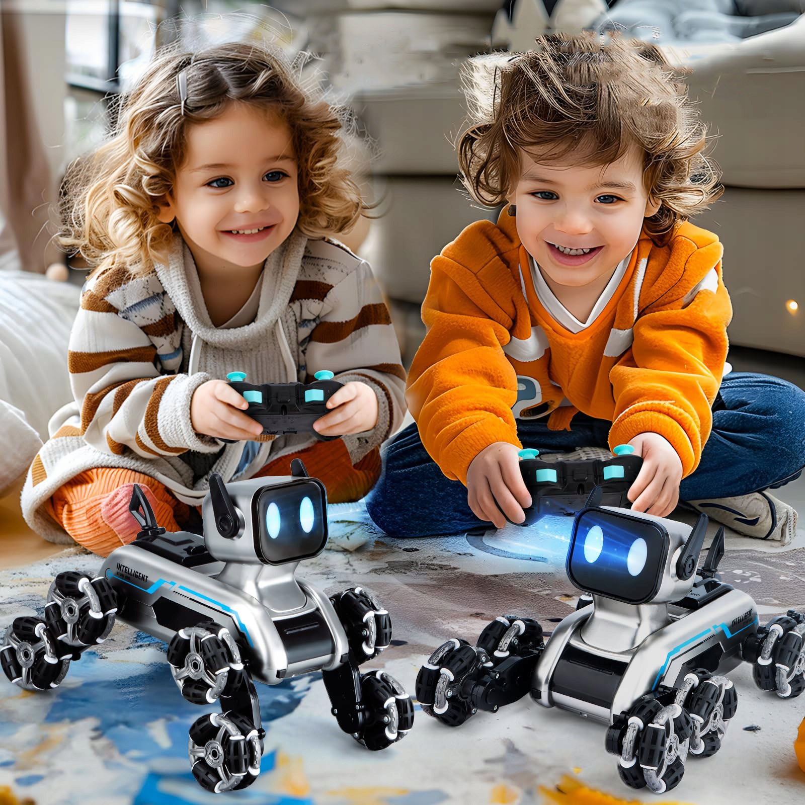 Эта игрушка с дистанционным управлением представляет собой собаку-робота с 8 колесами, обеспечивающую потрясающие трюки и маневренность. . Он может стоять, лежать, карабкаться, двигаться во всех направлениях, вращаться на 360 градусов и танцевать. Эта радиоуправляемая трюковая машинка позволяет детям ощутить веселье и креативность технологий, занимая их и развлекая часами.