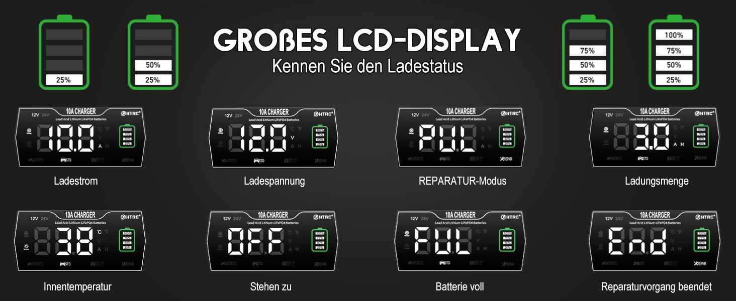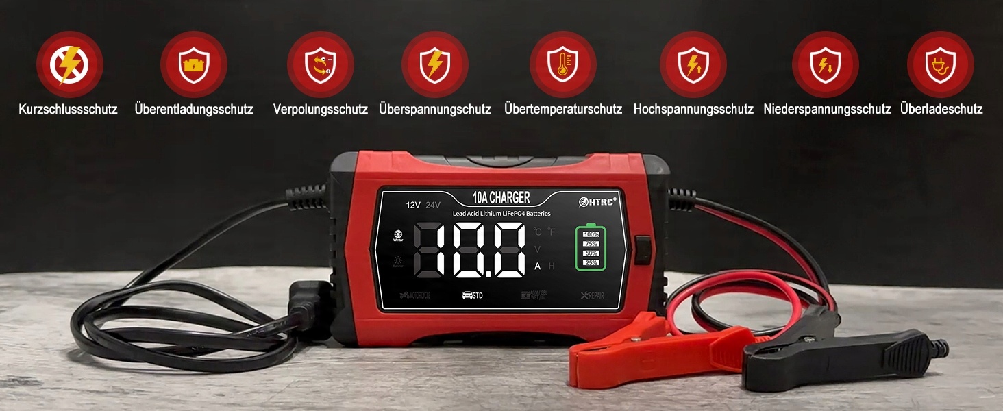 INTELIGENTNY PROSTOWNIK ŁADOWARKA Auto 10A AKUMULATORA LiFePO4 LCD 12V 24V