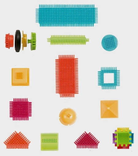 - блоки созданы для стимуляции развития чувств ребенка: зрения посредством выразительных цветов и осязания посредством оригинальной формы