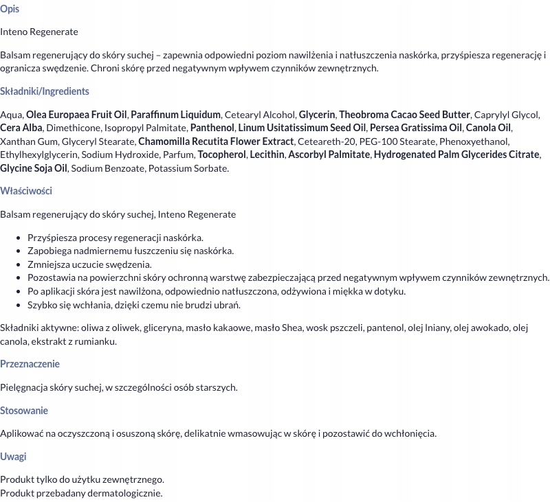 Inteno Regenerate, восстанавливающий бальзам для сухой кожи, 300 мл