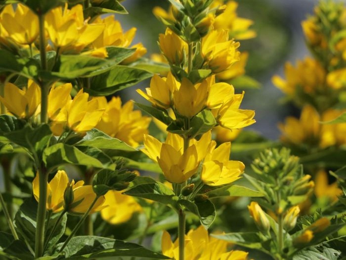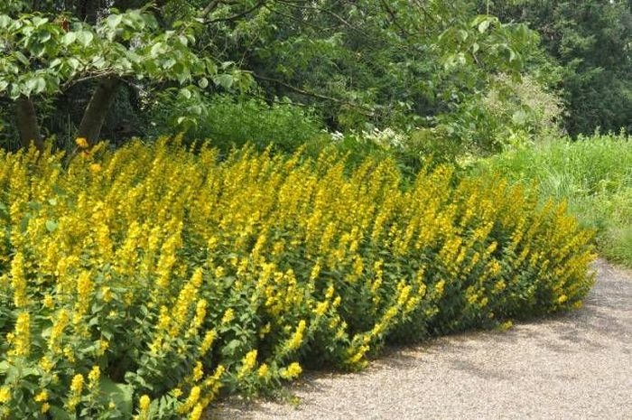 Многолетник прямостоячей формы и прямостоячими побегами. Цветет обильно летом, обычно в июне и июле. Затем на прямых побегах массово появляются желтые цветки. Растет подземными столонами и в хороших условиях может достигать крупных размеров. Обычно комки достигают около 60 см в высоту и до 80-120 см в диаметре. Предпочитает влажную и плодородную почву и слегка защищенные от прямых солнечных лучей места. Однако он очень устойчив к периодическим засухам, а также переносит солнечный свет при условии, что почва достаточно влажная. Это полностью морозостойкий многолетник. Растение часто высаживают на клумбах и возле водоемов.