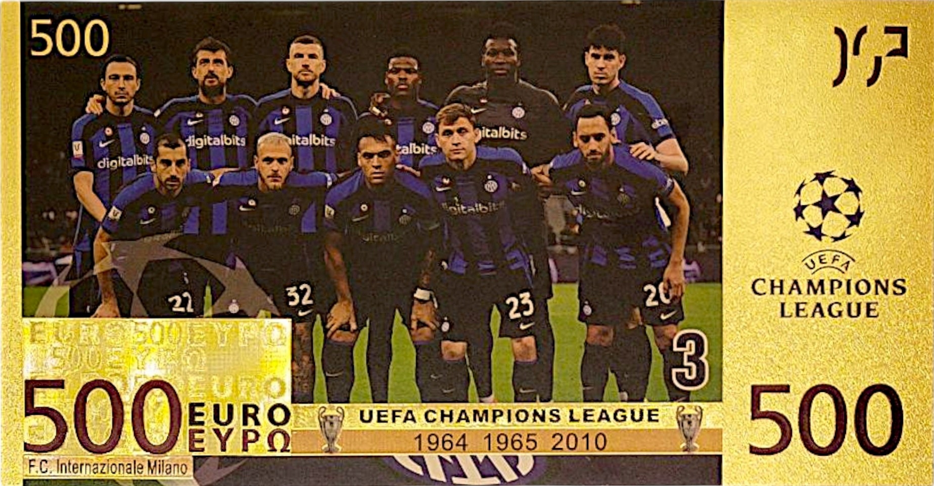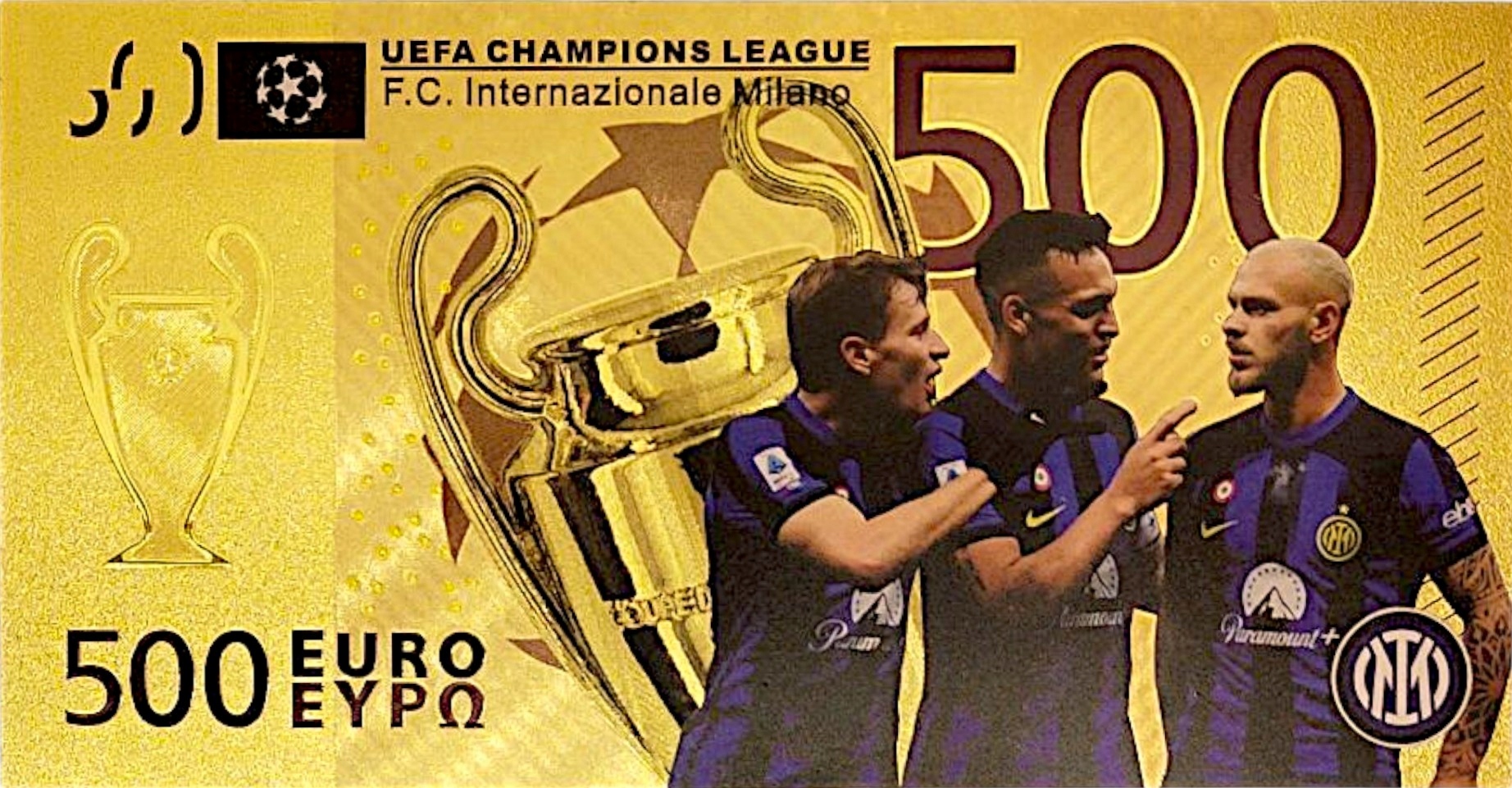 Inter Mediolan Fancy Banknote Gold, сплавляемое с гаджетом из ПВХ для футбольного поклонника