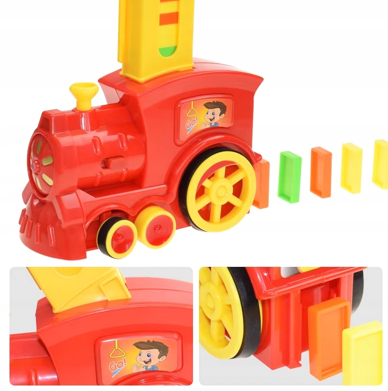 Domino Locomotive! Красочный локомотив, разработанный с необычайным вниманием к деталям, организует себя домино, привлекая внимание ребенка легкими и звуковыми эффектами. Это идеальный способ познакомить детей с творческим и развивающимся весельем. Направление вождения может быть легко изменено, повернув поезда, что позволяет создавать более сложные пути и конструкции. После укладки ребенок может уничтожить домино одним движением, получая впечатляющий эффект, который определенно поразит их!