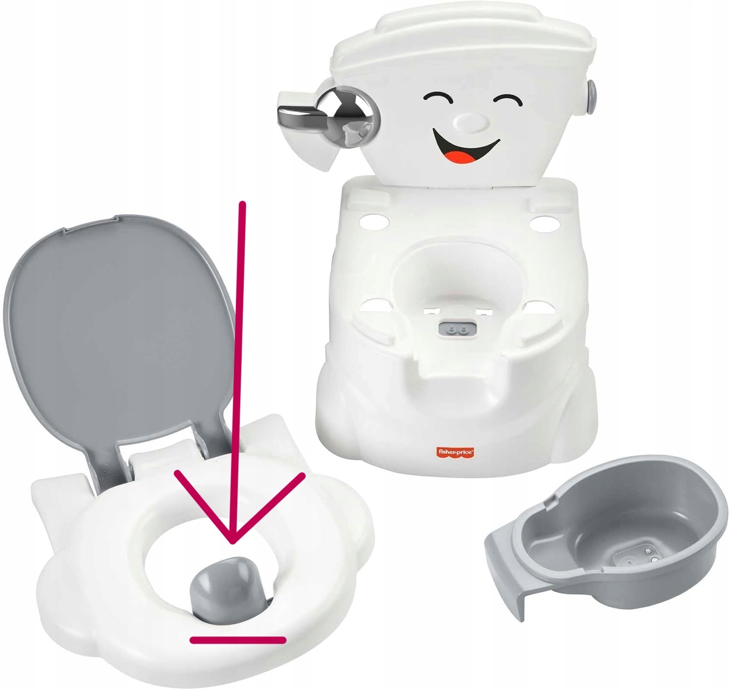 Поддерживает переход от горшка к туалету: съемная туалетная доска облегчает переход от горшка к туалету (не используйте на мягких туалетных платах)