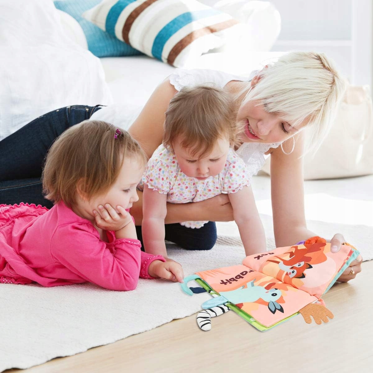 Красочные страницы и различные текстуры привлекают внимание ребенка. Шелеевые звуки развивают ощущение слуха, а мягкие хвосты и узоры стимулируют прикосновение и воображение. кроватка или ручка. Идеально как дома, так и на прогулках, предоставляя ребенку развлечения и образование