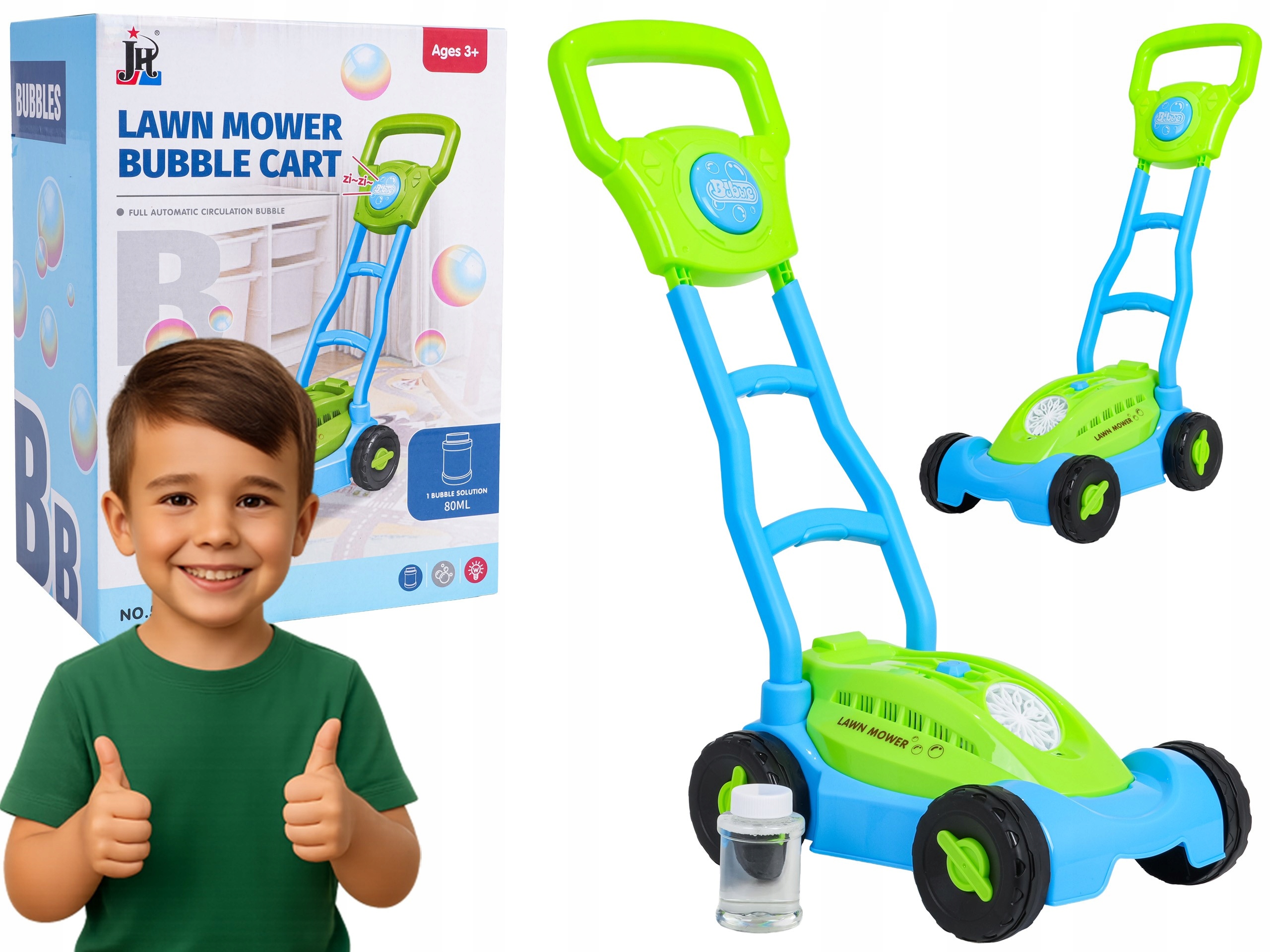 Газонокосилка с функцией выдувания пузырей и подсветкой – предложение для детей от трех лет.