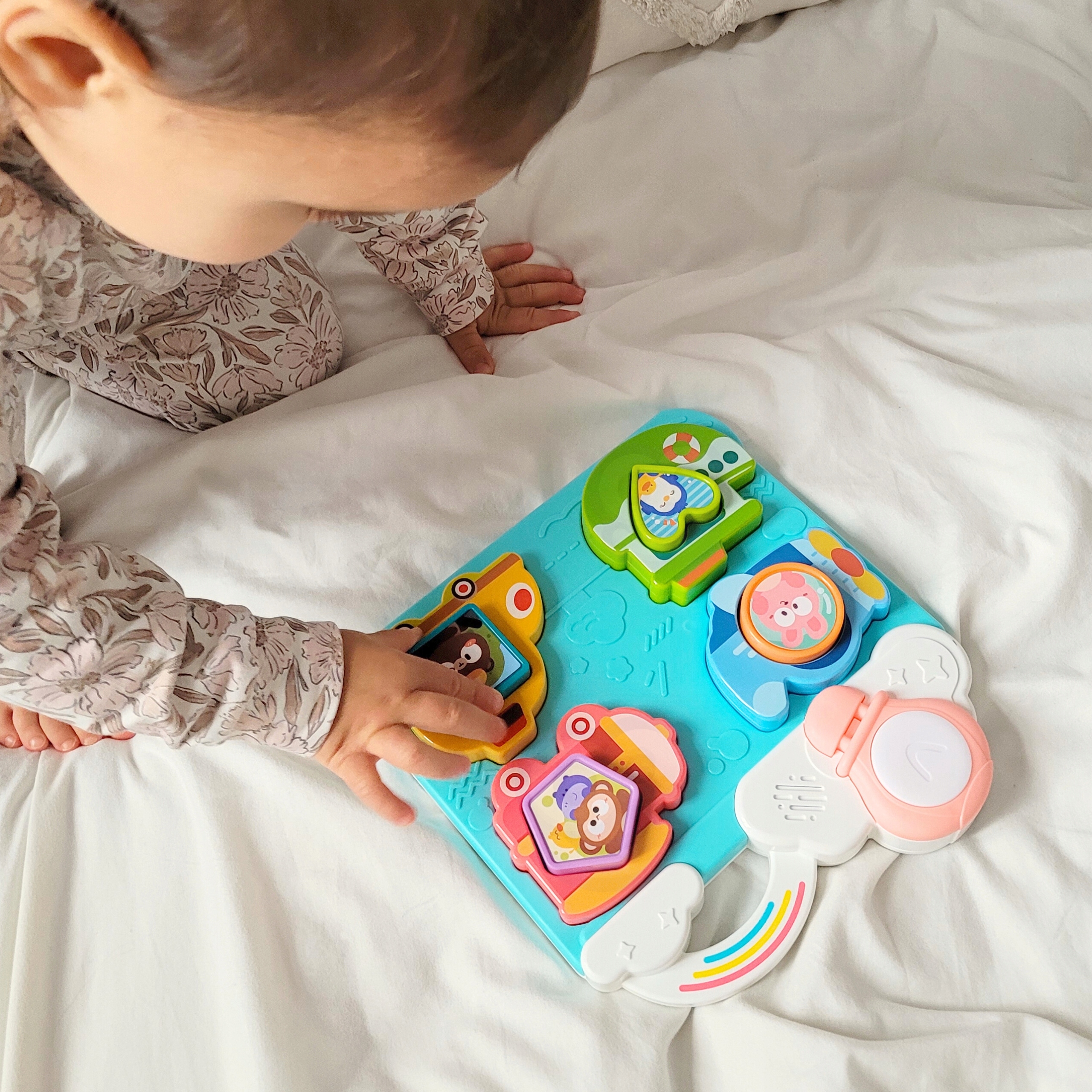 Интерактивная головоломка от бренда Woopie Brand b> - очаровательная образовательная игрушка, предназначенная для самых молодых детей. Игрушка сочетает в себе элементы когнитивного, сенсорного и моторного развития, , поддерживая комплексное развитие ребенка с первых месяцев жизни. Благодаря привлекательным цветам, звукам и интерактивным элементам игрушка побуждает детей учиться в игре, при этом развивая свои ручные навыки и способность распознавать формы и цвета.