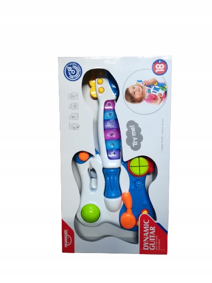 Представленная синяя музыкальная игрушка имеет форму, напоминающую настоящую электрогитару. Приятные для глаз, удачно подобранные цвета заставят каждого ребенка играть с большим энтузиазмом. Гитара имеет обтекаемые, закругленные формы, которые очень безопасны для малыша. Интерактивная игрушка оснащена 9 кнопками, с помощью которых малыш может активировать интересные мелодии и различные звуки.