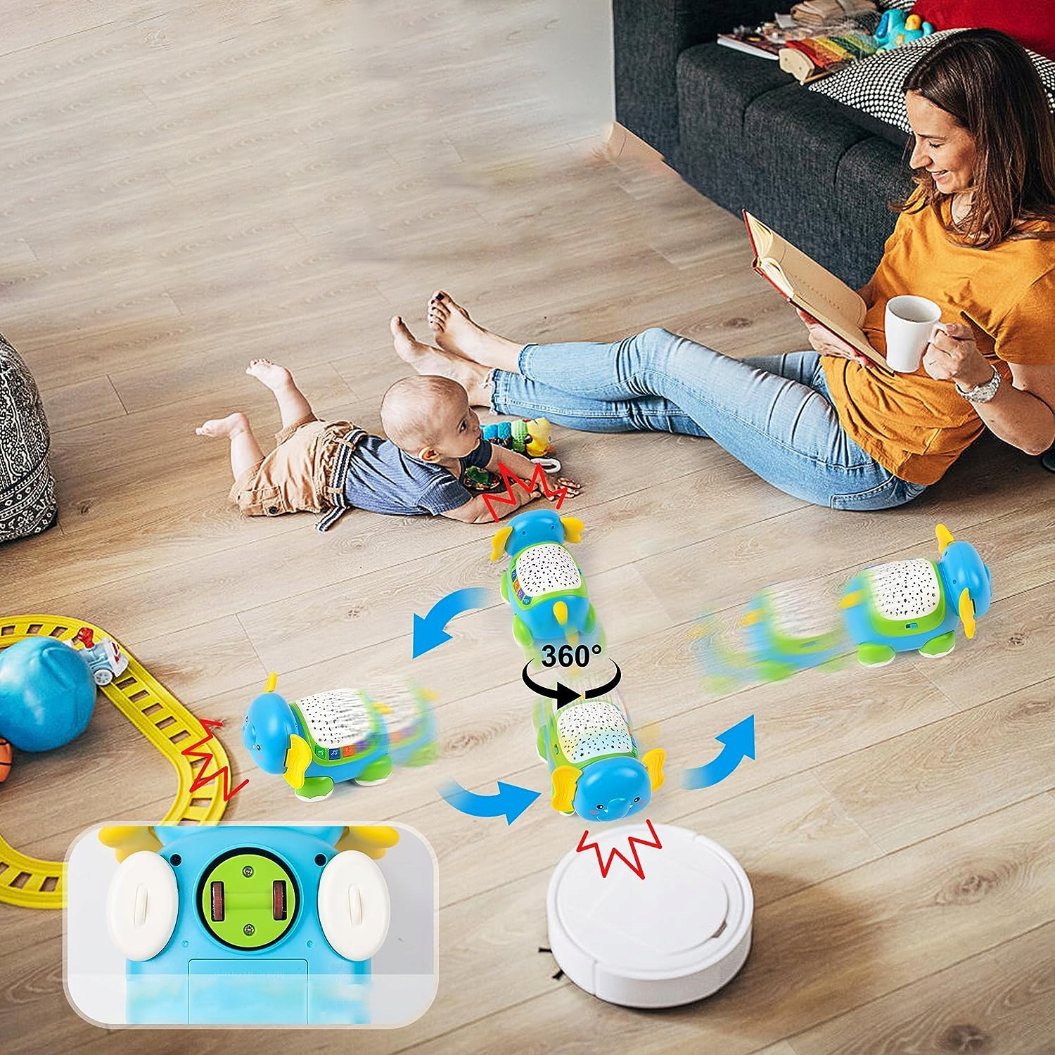 ⭐️【Интеллектуальное объезд препятствий и дистанционное управление】 Детская музыкальная игрушка оснащена универсальными колесами. Он может избегать препятствий, когда игрушка касается ковра или стены, поэтому вам не придется постоянно вращать игрушку, как другие. Родители могут использовать пульт дистанционного управления, чтобы управлять детскими игрушками, играть с ними и наслаждаться взаимодействием родителей и детей.