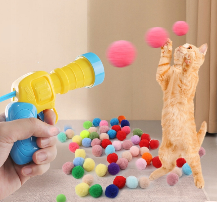 ZABAWKA INTERAKTYWNA DLA KOTA PISTOLET + PIŁECZKI WYRZUTNIA