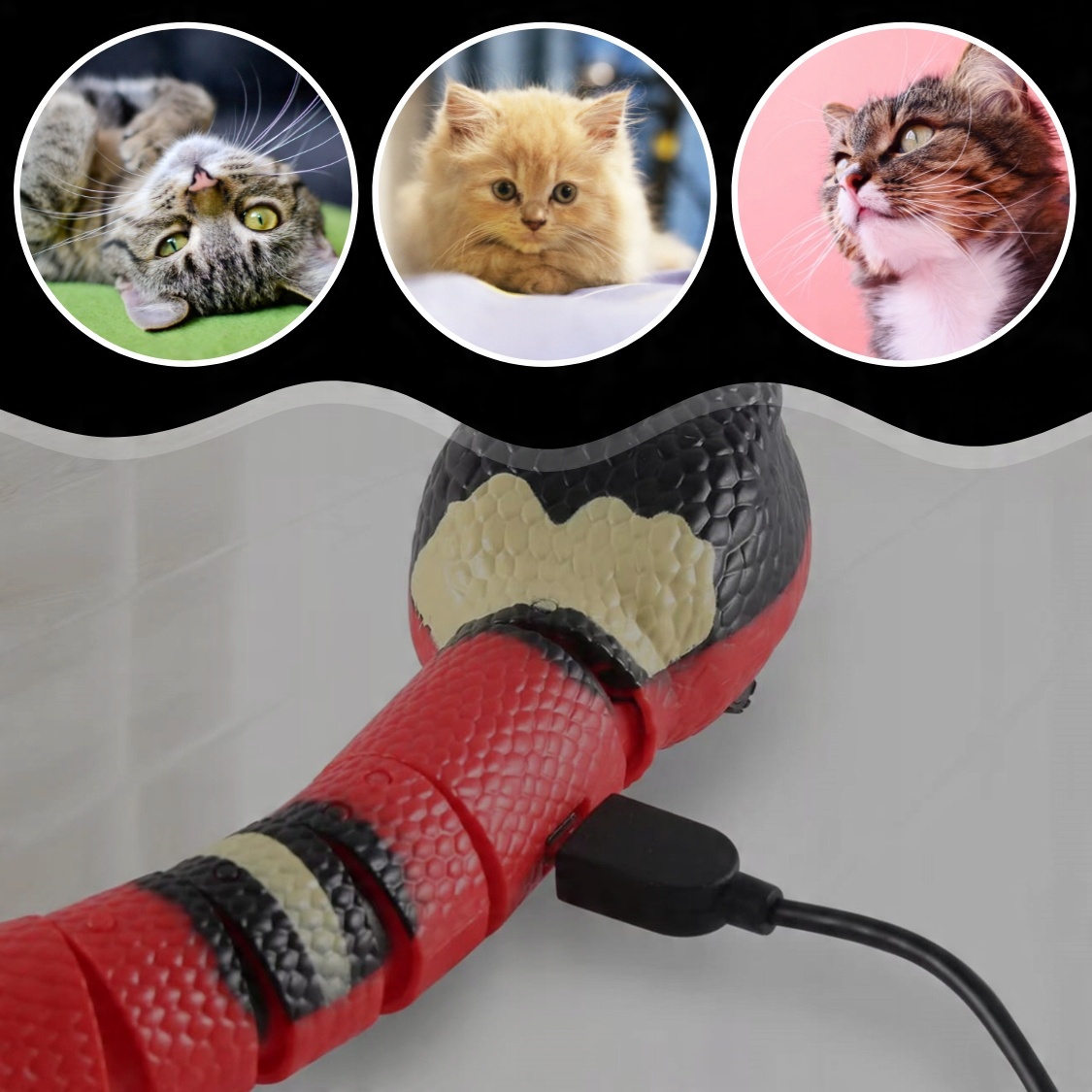 - Тип игрушки: Интерактивная игрушка для кошек в виде электрической змеи