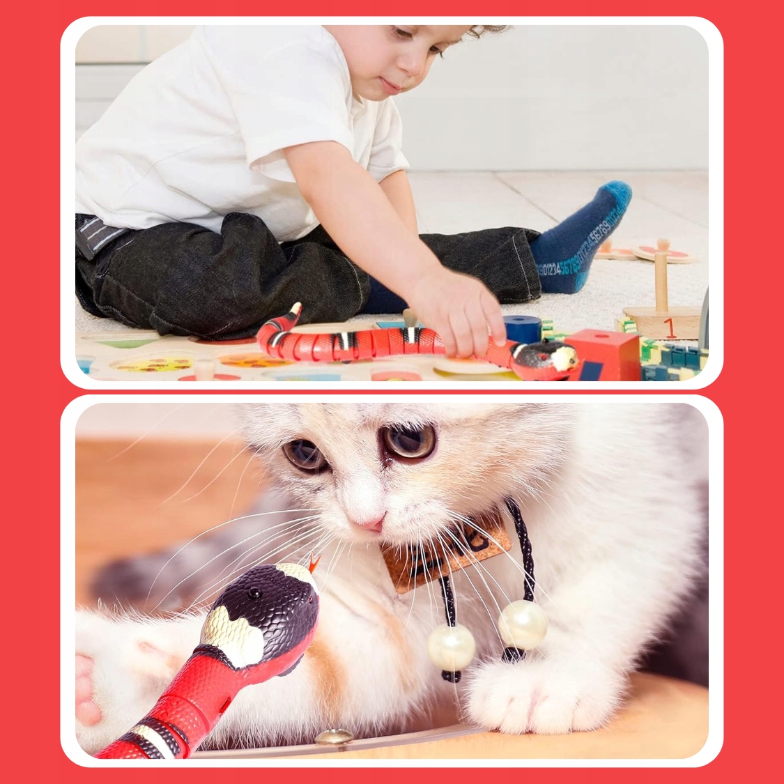 ✔️Выдвижной язык – Движение языка имитирует поведение настоящей змеи, что эффективно привлекает внимание кошки и стимулирует ее охоту. инстинкт.