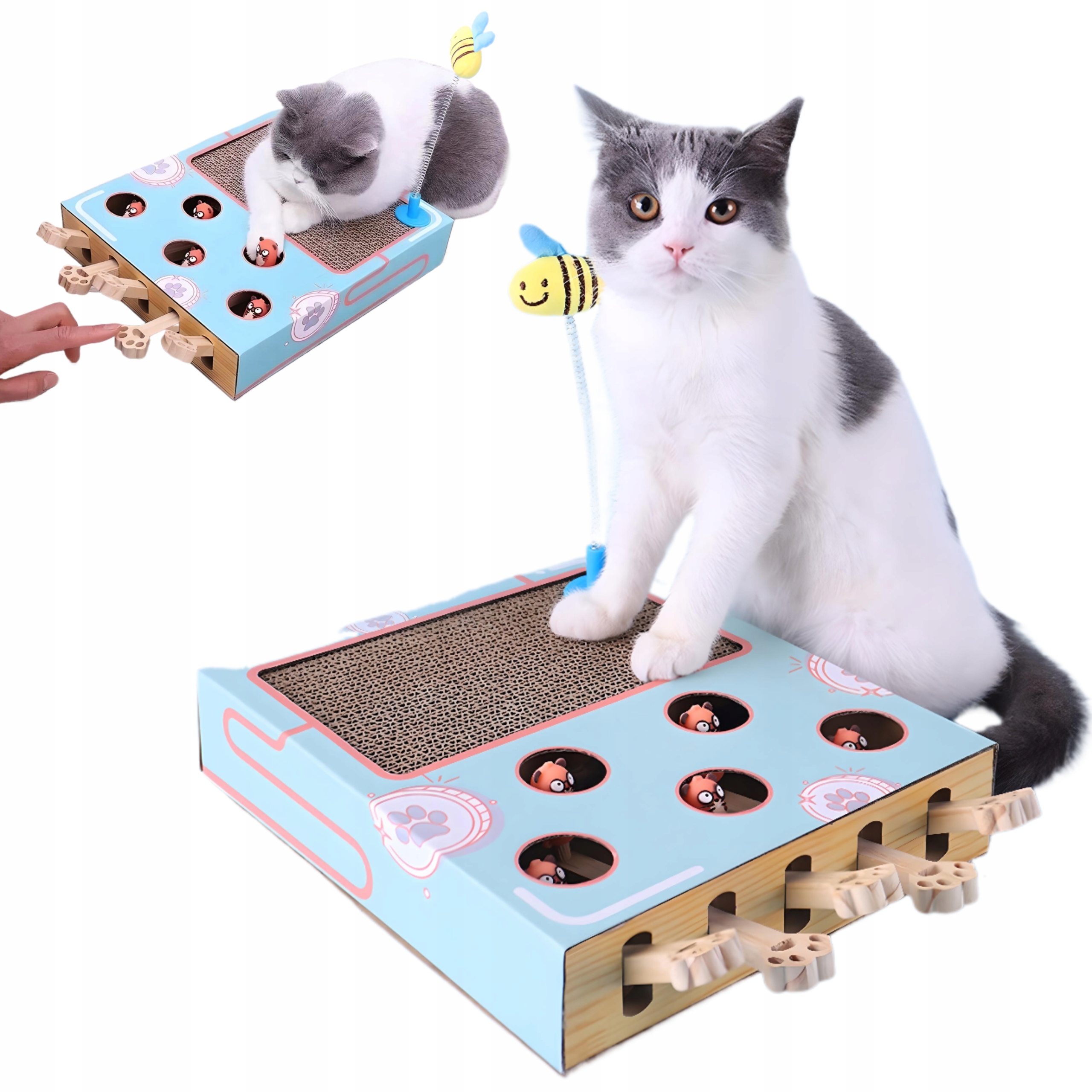 - Игра «Кошка»: захватывающая игра, которая вовлекает вашу кошку в игру. он прижимает лапы и наблюдает, как резиновые хомяки выпрыгивают из 5 дырок, что заставляет кошку активно тренироваться как физически, так и умственно.