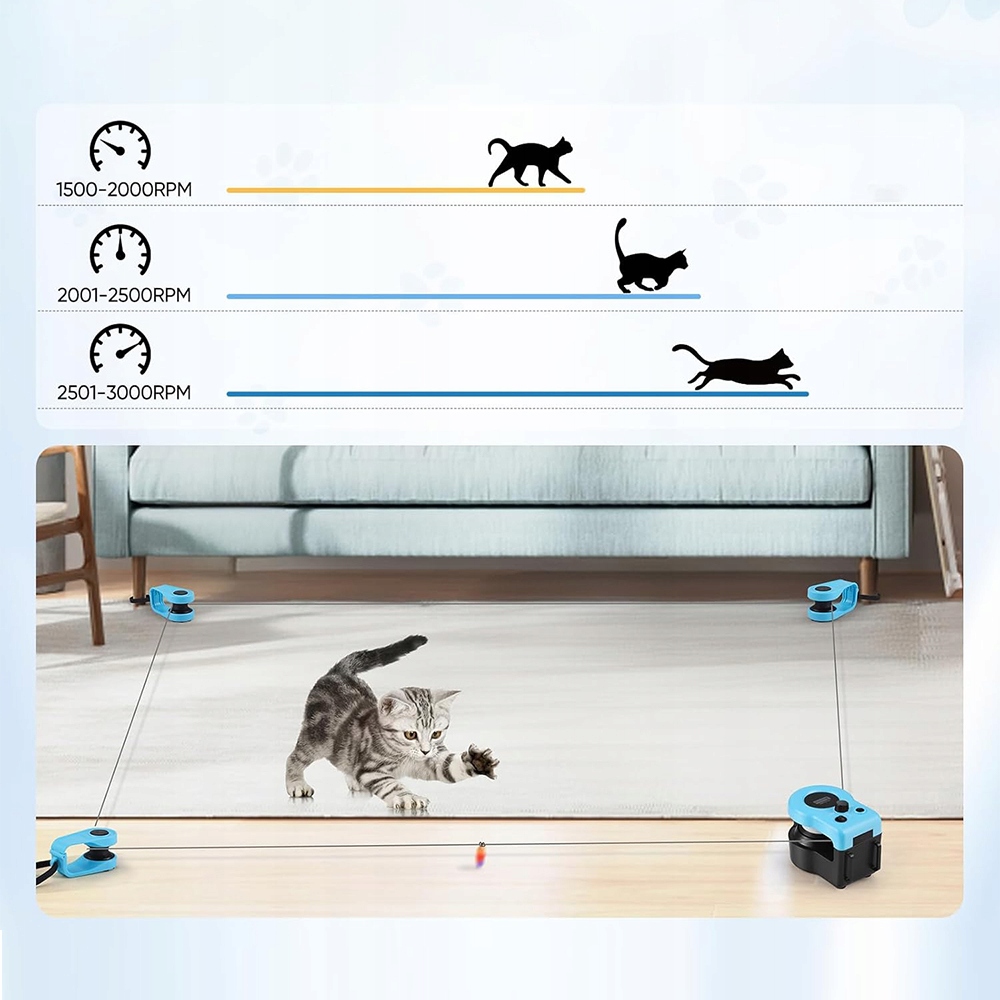 ✅Регулируемая скорость и аккумулятор: Отрегулируйте скорость (1500–2000 об/мин для ходьбы, 2001–2500 об/мин для бега, 2501–3000 об/мин для бега) в соответствии с подвижностью вашей кошки для безопасной и увлекательной тренировки. Игрушка питается от аккумулятора емкостью 4000 мАч и обеспечивает время работы от 3 до 5 дней.