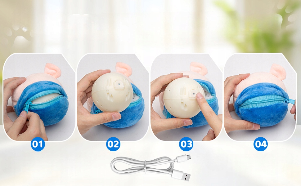 Интерактивная игрушка для собаки легко установить. Интерактивная игрушка для собаки, очаровательная плюшевая крышка можно стирать. Просто откройте липучку на плюшевой игрушке для собаки, удалите прыгающий мяч, очистите плюшевую крышку и оставьте, чтобы высохнуть.