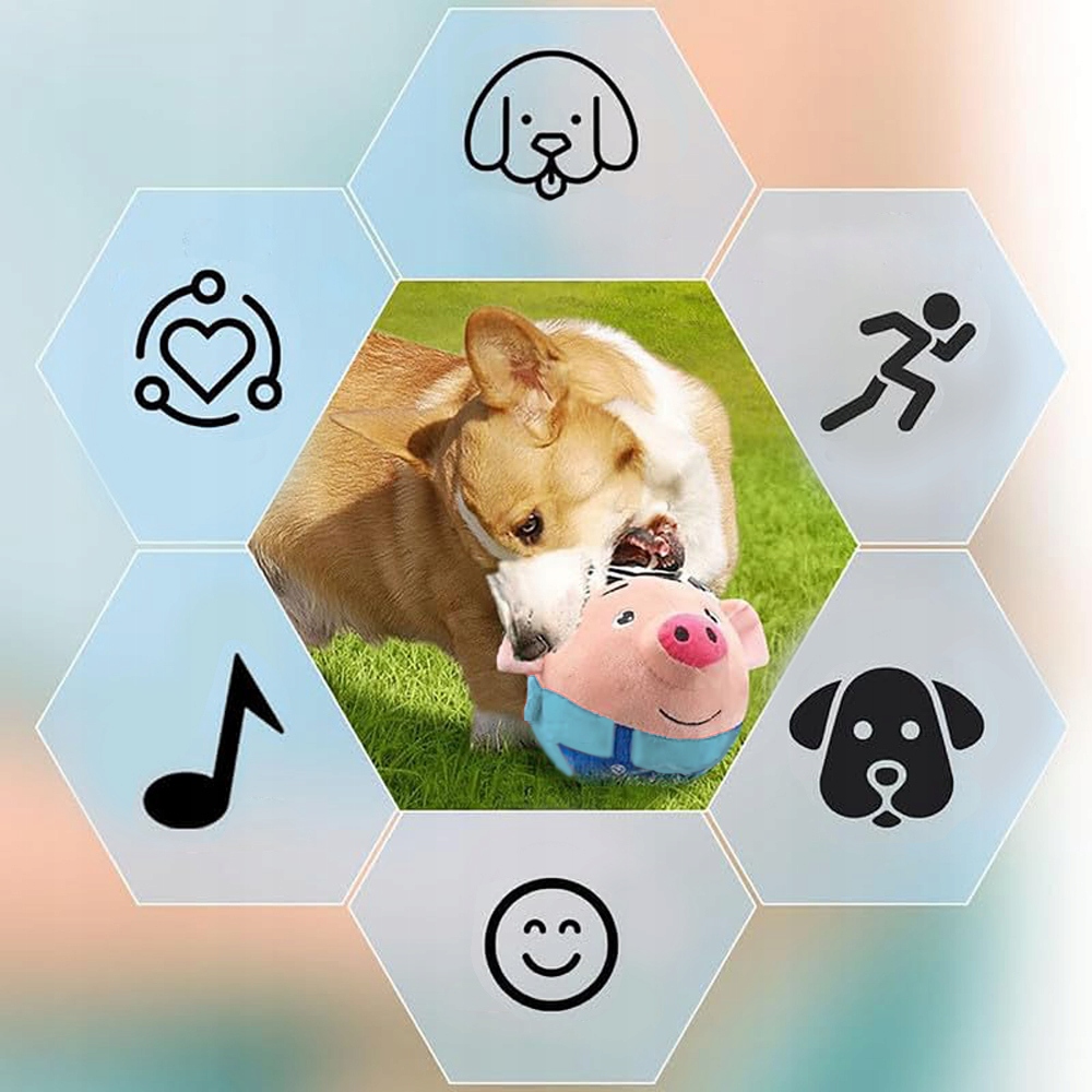 🐽 - благодаря интерактивному дизайну автоматически заставляет собаку звучать после включения и случайным образом встряхивания в течение 12 секунд, привлекая собак к погоне, кусочке, толчке.