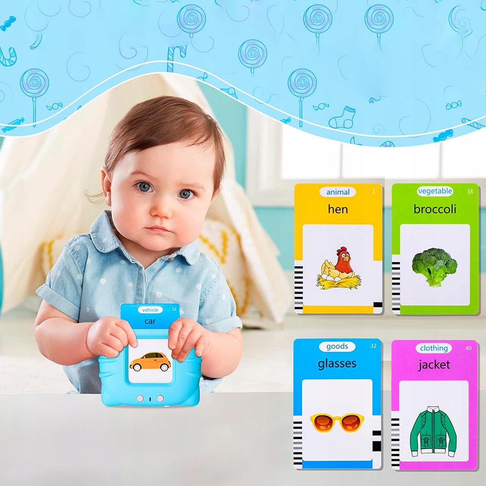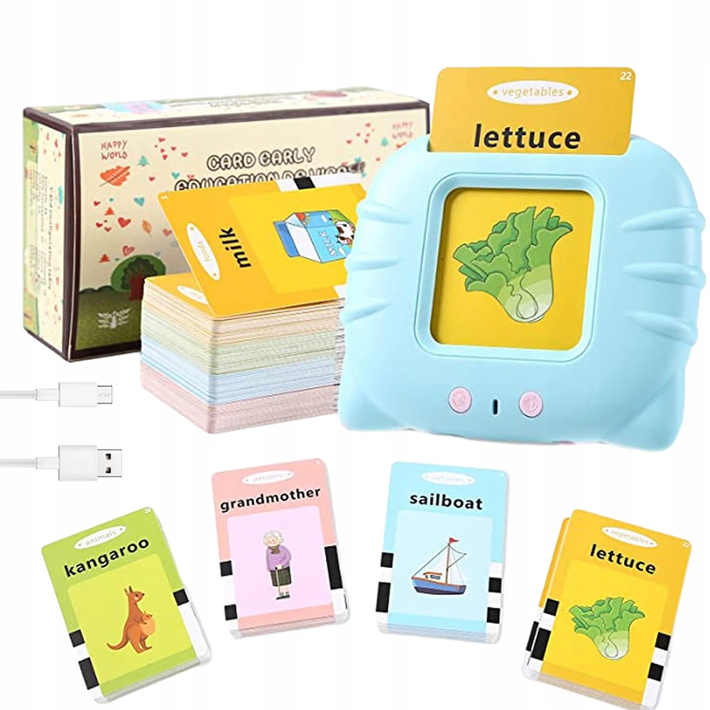 игрушки для раннего развития для малышей 1–7 лет, дошкольное устройство для чтения, 192 говорящих карточки, двусторонние карточки для малышей, 384 слова, синий< /п>