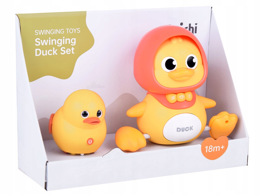 Большая утка тратит счастливую мелодию, которая, безусловно, будет стимулировать удовольствие. Кроме того, Kaczuszka движется по плоской поверхности, ритмично выдвигая в сторону музыки музыки