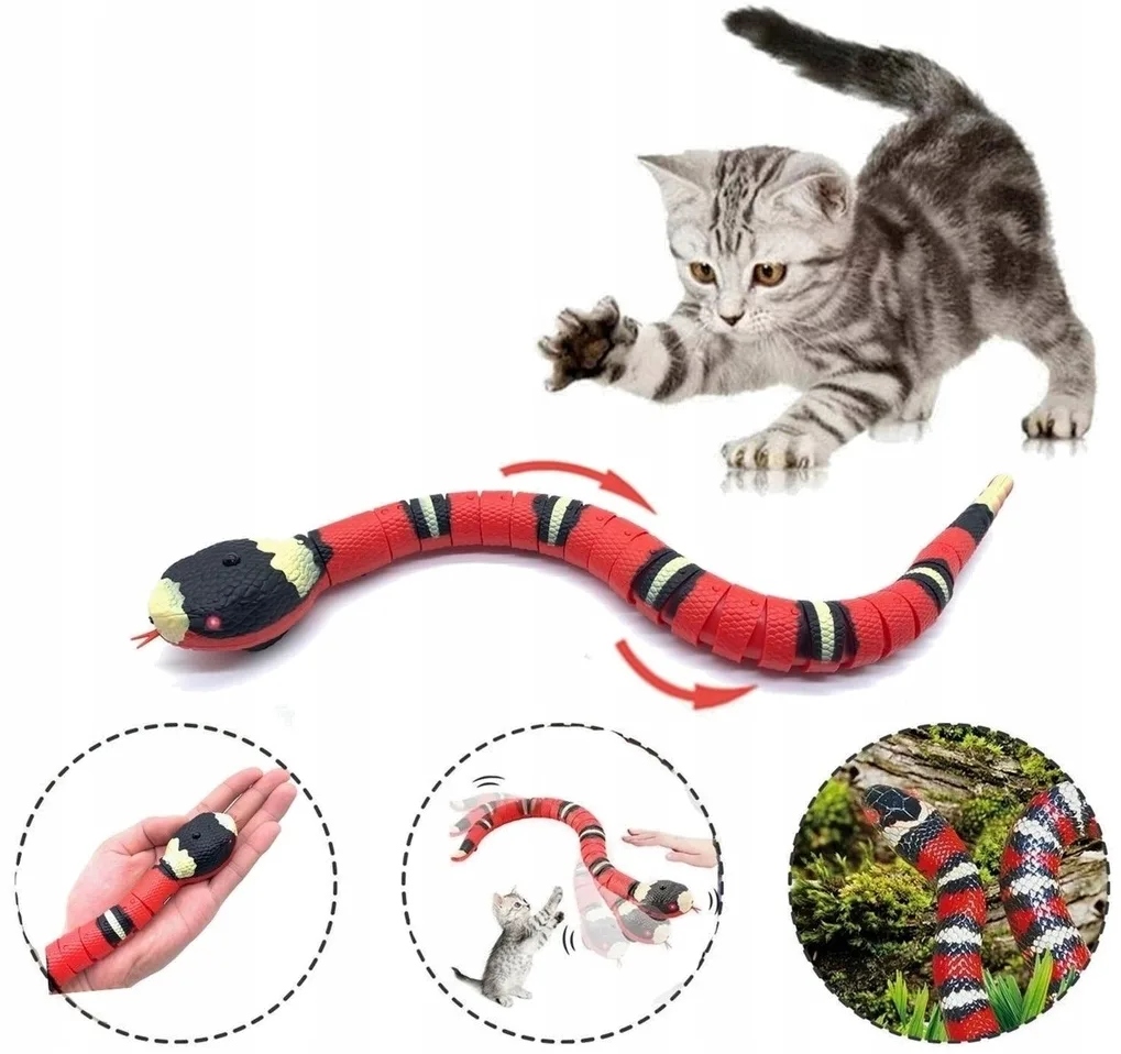 ✅ Ползущая змея – игрушка для каждого кота, активного и малоподвижного.