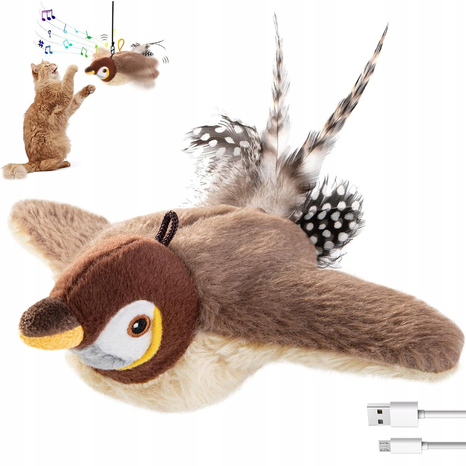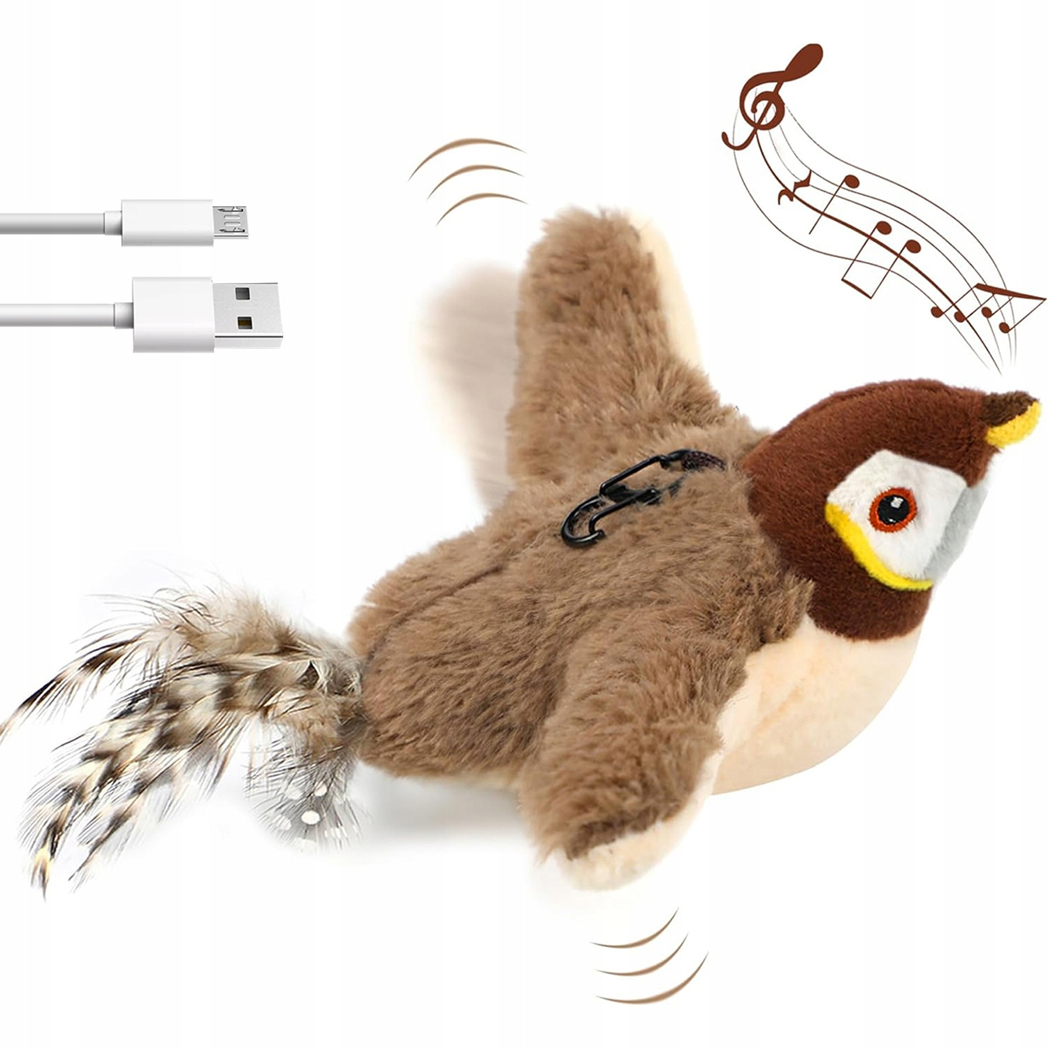 ЛЕТАЮЩАЯ ПТИЦА ДЛЯ КОШКИ С ДВИЖЕНИЕМ И ЗВУКОМ НА USB ИНТЕРАКТИВНОЙ ИГРУШКЕ