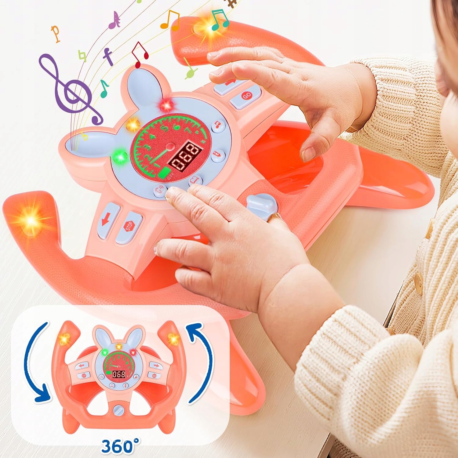 - Забавная развивающая игрушка для детей: руль вращается на 360 градусов и оснащен левым и правым поворотниками. Электронный указатель скорости показывает цифры после ускорения и деактивации. Руль вибрирует, когда нажимаешь и удерживаешь кнопку газа. Рулевое колесо также оснащено считывателем алфавита с 26 буквами и информацией о дорожном движении, поэтому ваш ребенок может изучать любую информацию о дорожном движении.
