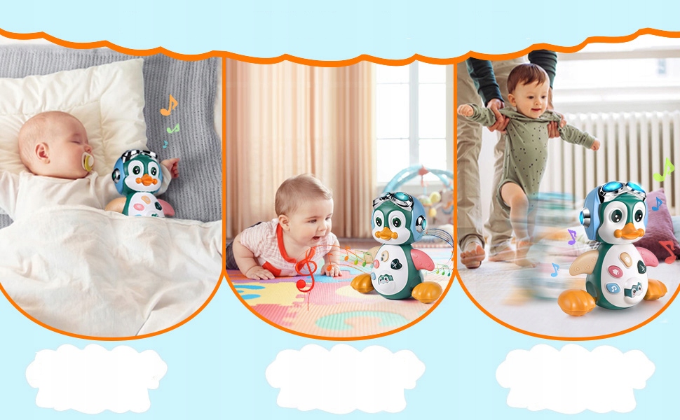 Прочные и долговечные подарки:Эта музыкальная игрушка для детей в возрасте от 6 до 12 месяцев — отличный пасхальный подарок для мальчиков, девочек и малышей. Эта музыкальная, подвижная пасхальная игрушка в форме пингвина устойчива к ударам, царапинам и падениям и достаточно прочна, чтобы с ней могли играть дети. Идеально подходит в качестве пасхального подарка для детей, рождественского подарка, подарка на первый день рождения, рождественского подарка или просто нового подарка для младенцев, малышей, девочек и мальчиков.