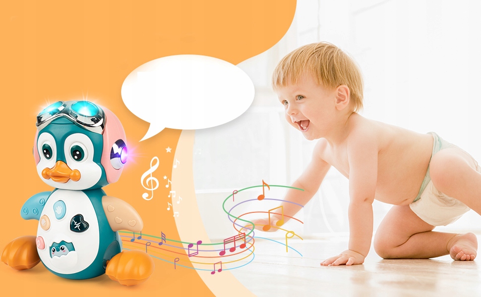 Предложите малышу ползать:Музыкальная пасхальная игрушка для малышей в виде пингвина двигается, играет музыку и светится в режиме «GO». Он привлекает внимание малыша, который хочет за ним гоняться и ползать. Идеально подходит для развития мелкой моторики малышей и обучения управлению большими мышцами, которые позволяют им ползать, ходить и поддерживать баланс тела во время игры. Идеальная пасхальная игрушка для малышей 1-2 лет, мальчиков и девочек.
