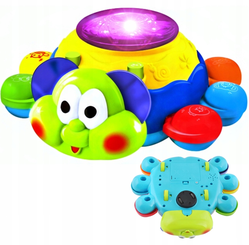 - игрушка играет мелодии и бегает (убегает), что помогает в обучении ползанию