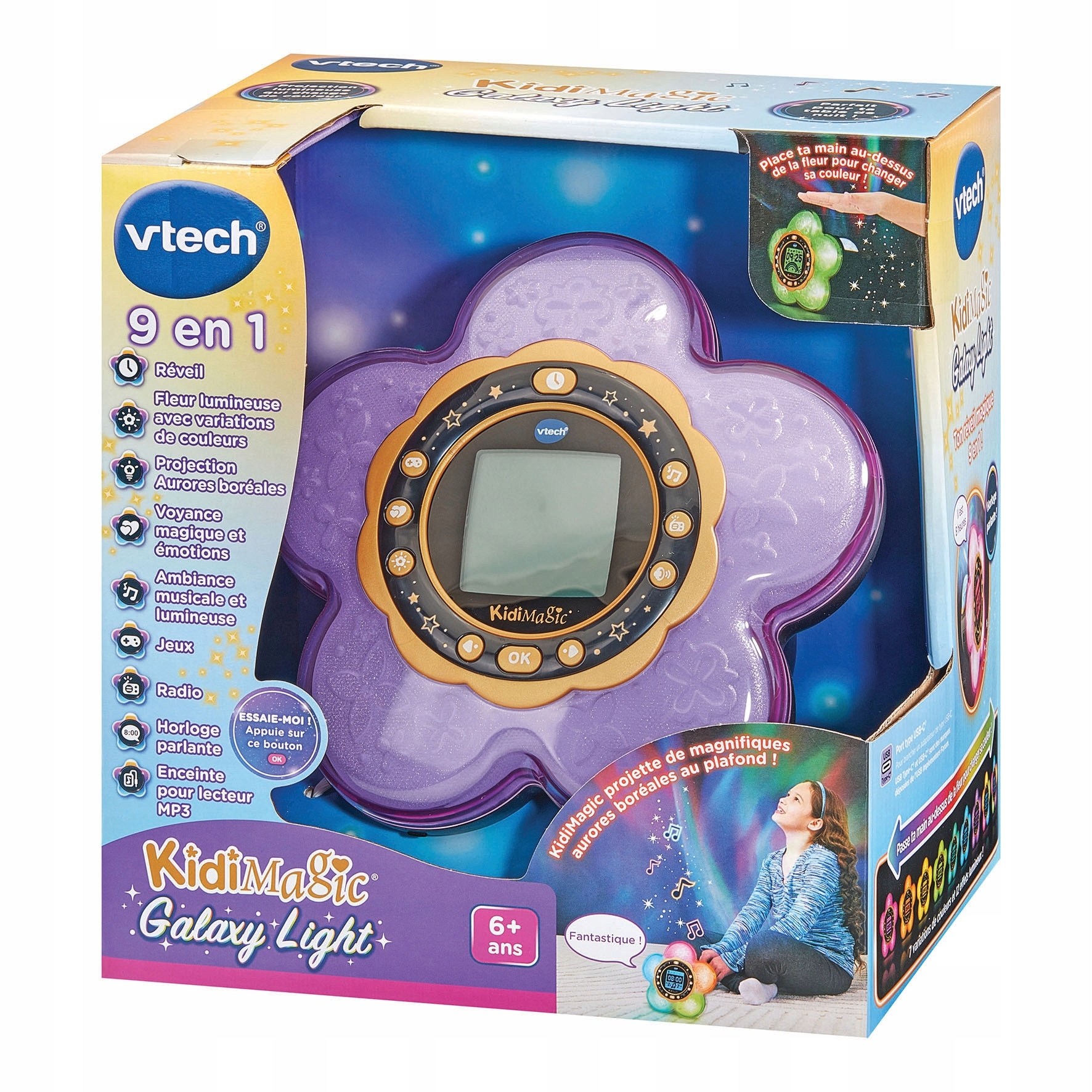 <р> Создайте уникальную атмосферу с помощью 12 световых эффектов и 7 цветов, которые превратят комнату в страну чудес. Волшебный датчик цвета реагирует на движение руки, предлагая интерактивное развлечение. <р> Радио с будильником и встроенной музыкой порадует детей, наполнив утро звуками. Подключите внешний MP3-плеер и наслаждайтесь любимыми песнями. Автоматическое выключение игрушки и регулировка громкости – повседневное удобство. <р> Откройте для себя 6 занятий и 4 игры, которые поддерживают эмоциональное и творческое развитие и идеально подходят для каждого юного исследователя. Безопасный и простой в использовании, идеальный подарок, сочетающий в себе обучение и развлечение.✅Параметры продукта