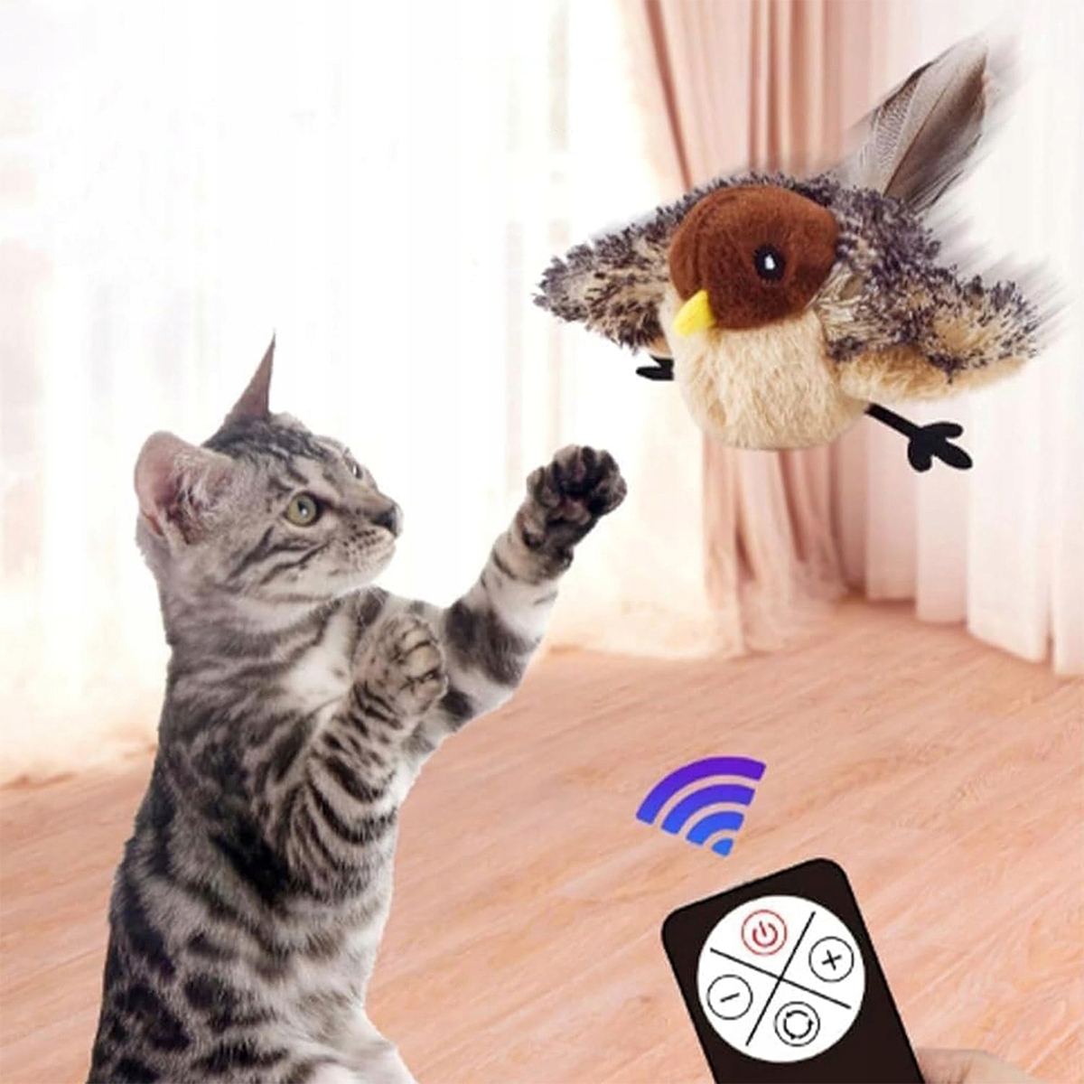 с пультом дистанционного управления и встроенным датчиком движения: эта интерактивная игрушка для кошек была разработана для того, чтобы предоставить вашему питомцу бесконечное веселье. Каждый раз, когда кошка касается игрушки, будет активирован встроенный датчик движения, а игрушечная птица начнет трепетать и махать крыльями, как настоящий воробей. Эта реалистичная функция, безусловно, восхищает вашу кошку и предоставит ему развлечения в течение многих часов.