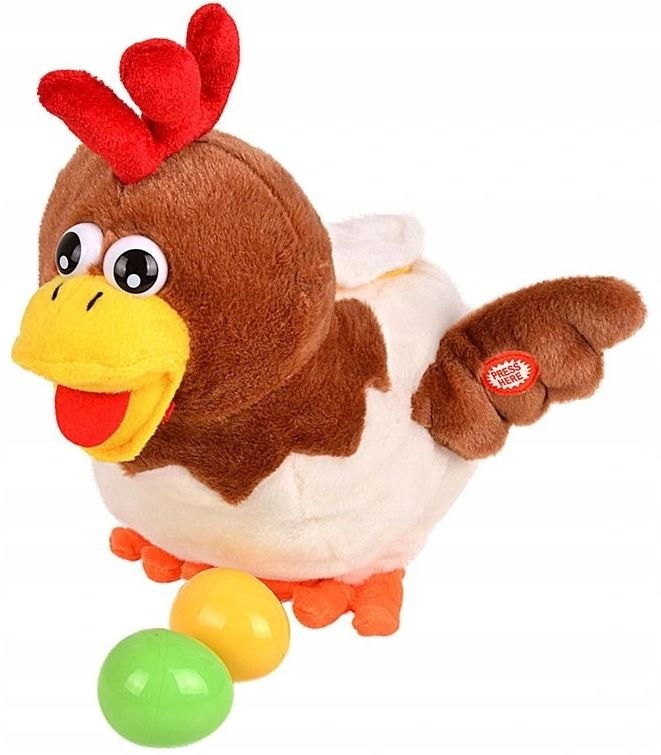 Отличная интерактивная курица, несущая яйца. Кроме того, он поет на польском языке и делает приседания. Откладывая яйца, он радостно поет и плавает на ногах. Курочка изготовлена из красивого и приятного плюша.