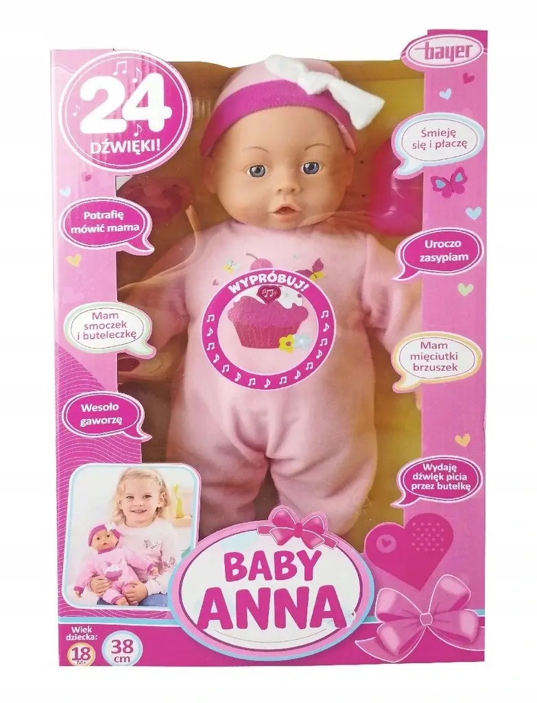 Интерактивная кукла Baby Anna, Малышка, Мама Разговаривает, Радуется, Смеется, Плачет - 38 см. Позаботьтесь об очаровательной кукле Анне, нажмите на ее животик, чтобы услышать один из 24 звуков!