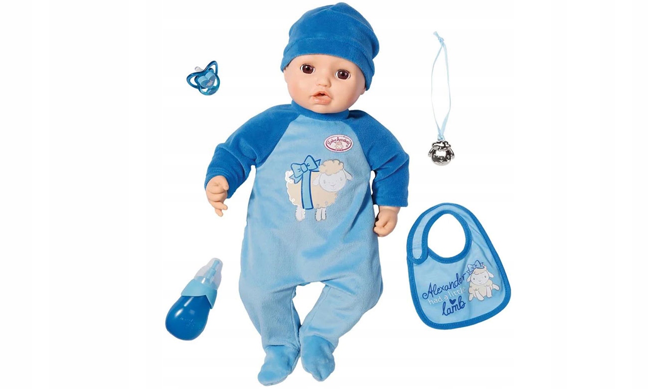 Кукла Александр имеет мягкое тело и реалистичные черты лица. Он громко смеется, когда ты щекочешь его живот. То, что он не смог преодолеть после выпивки, наконец-то находит выход. И если его не накормить достаточно быстро, могут появиться настоящие слезы и Александр может начать горько плакать. Но есть много способов снова его успокоить. Его любимый способ — покачиваться на коленях, от чего он счастливо смеется. Когда он кладет соску в рот и громко сосет, это обычно означает, что пора идти спать. Затем вы можете раскачивать его вперед и назад. Это заставляет его зевнуть, закрыть спящие глаза и заснуть, глубоко дыша.