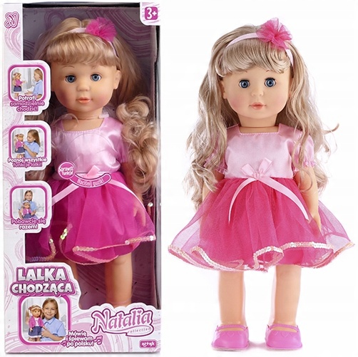Дважды хлопните в ладоши перед куклой и отведите Наталью на прогулку. Кукла говорит и поет на польском языке, что сделает ее обладательницу еще счастливее во время игры. У Натальи красивые длинные светлые волосы и красивая одежда. Она всегда готова поиграть с ребенком.